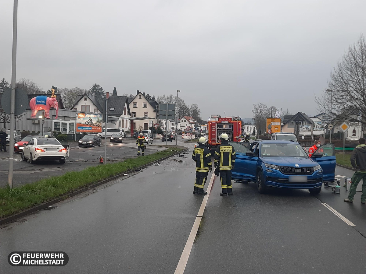 Gemeldet war ein Fahrzeugbrand nach einem Verkehrsunfall auf der B45 Abfahrt Frankfurter Straße. Beim Eintreffen wurde kein Feuer festgestellt, lediglich Kühlflüssigkeit verdampfte auf dem heißen Motor.