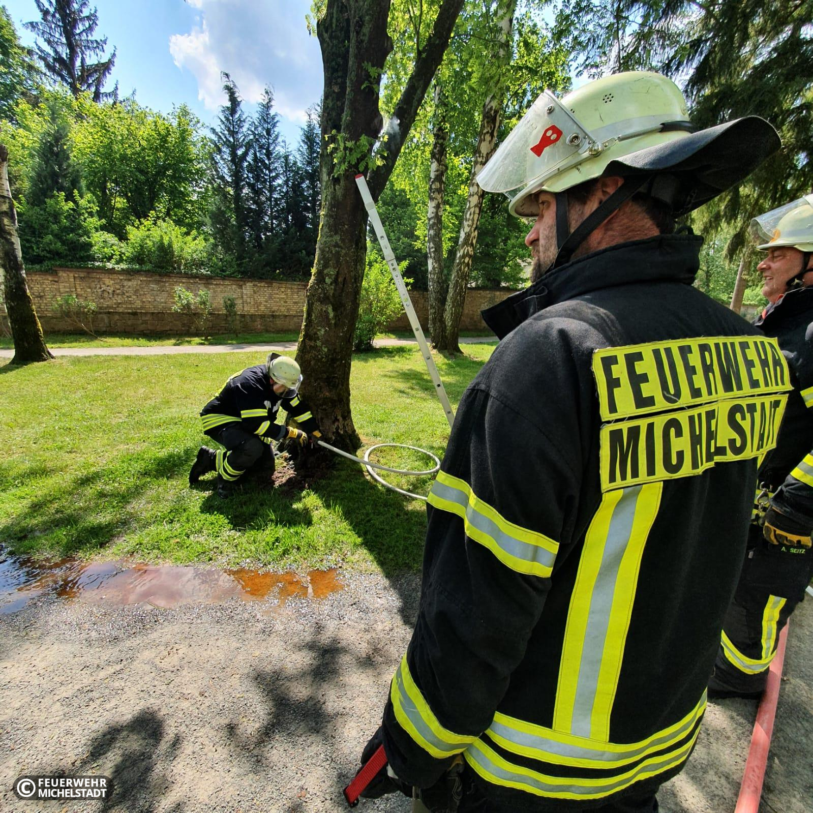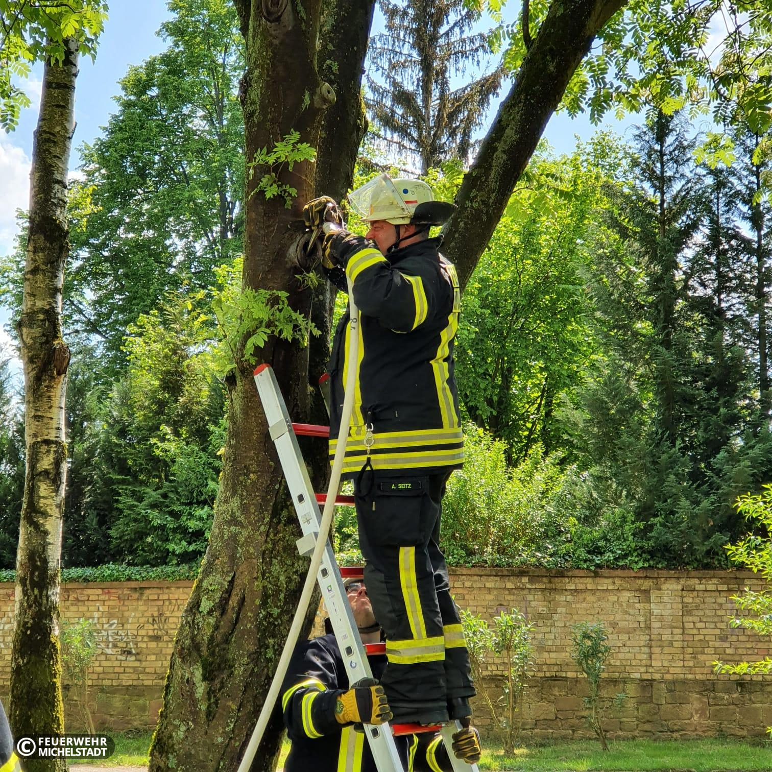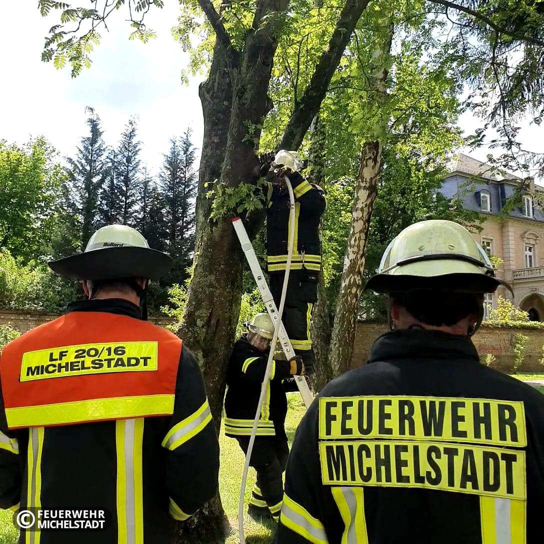 Im Park neben der Odenwaldhalle brannte ein hohler Baum. Dieser wurde mittels C-Hohlstrahlrohr und einem Fognail abgelöscht.