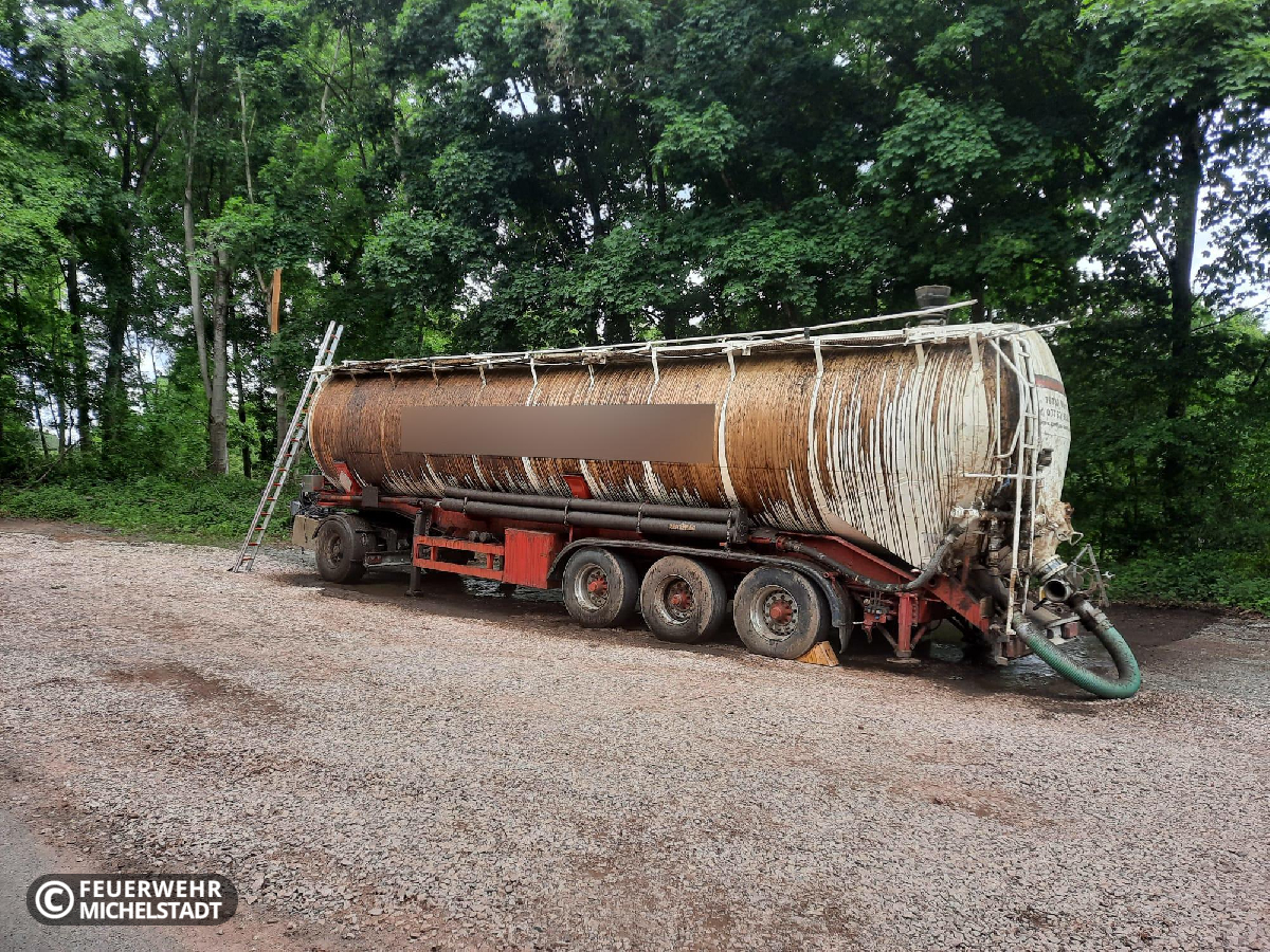 Aus einem Anhänger ist eine größere Menge Biogassubstrat ausgetreten. Der Einsatz konnte durch die Kameraden aus Zell und Bad König eigenständig abgearbeitet werden.