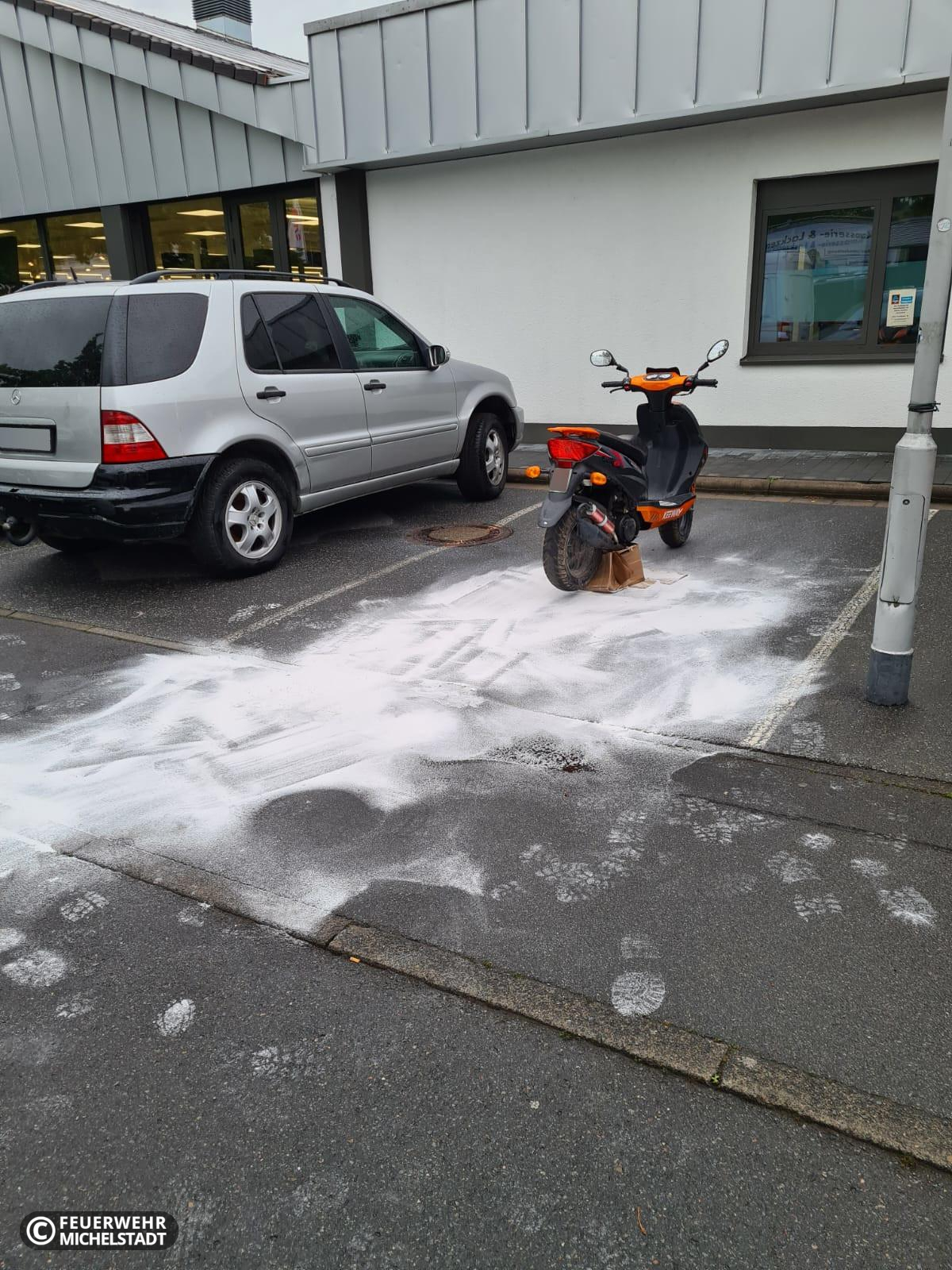Aus einem Motorroller lief Kraftstoff aus. Der wachhabende Brandsicherheitsdienst auf dem Bienenmarkt streute die betroffenen Stellen ab.
