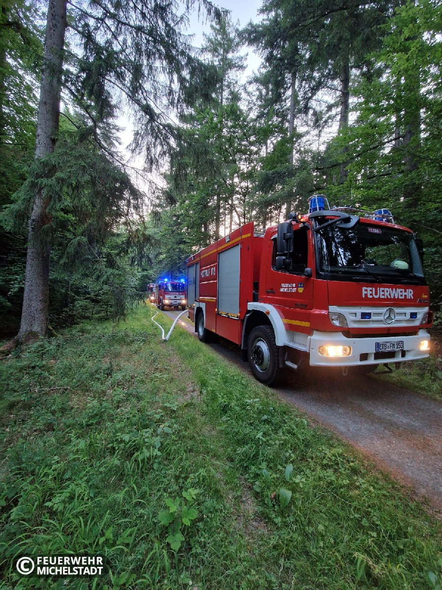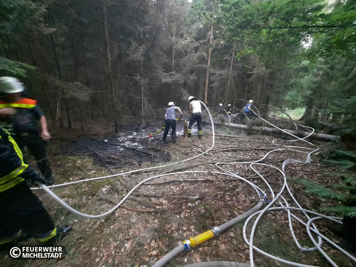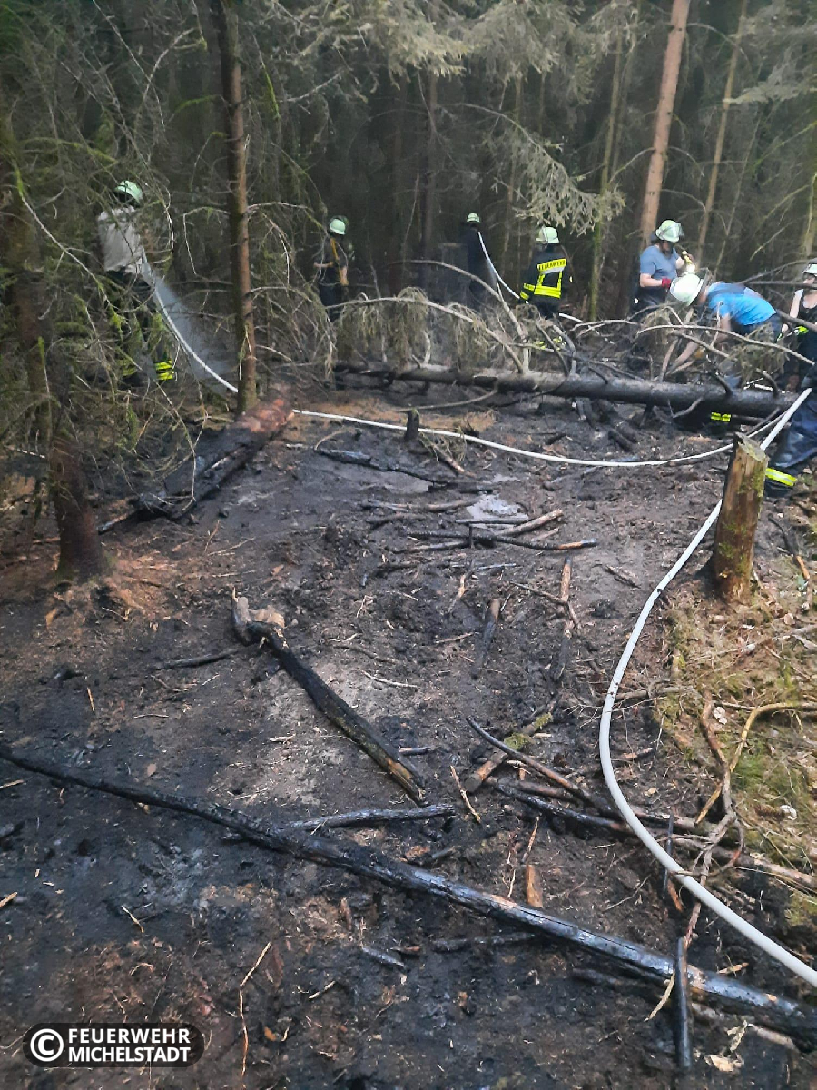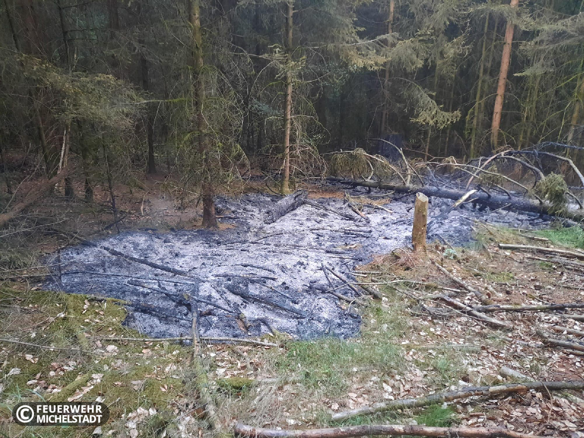Wir wurden zu einem Waldbrand im Bereich des Friedwaldes alarmiert. Ein Bodenfeuer von ca. 200 Quadratmetern wurde mit 3 D-Rohren abgelöscht. Besonders war, dass sich die Einsatzstelle 300 Meter abseits eines Waldweges in unwegsamem Gelände befand.