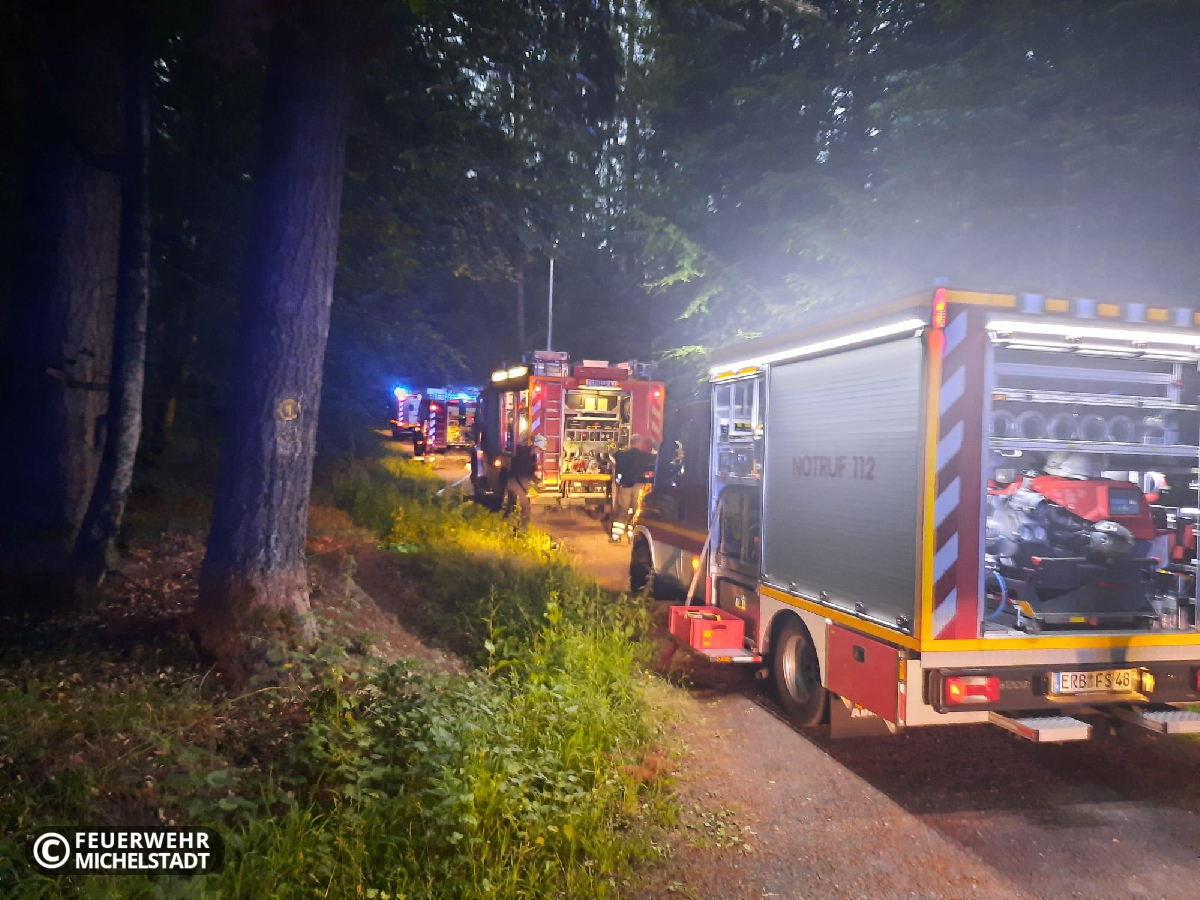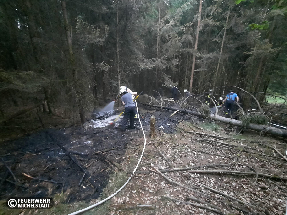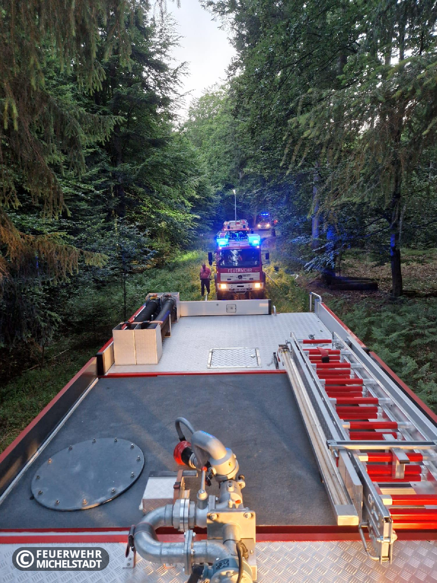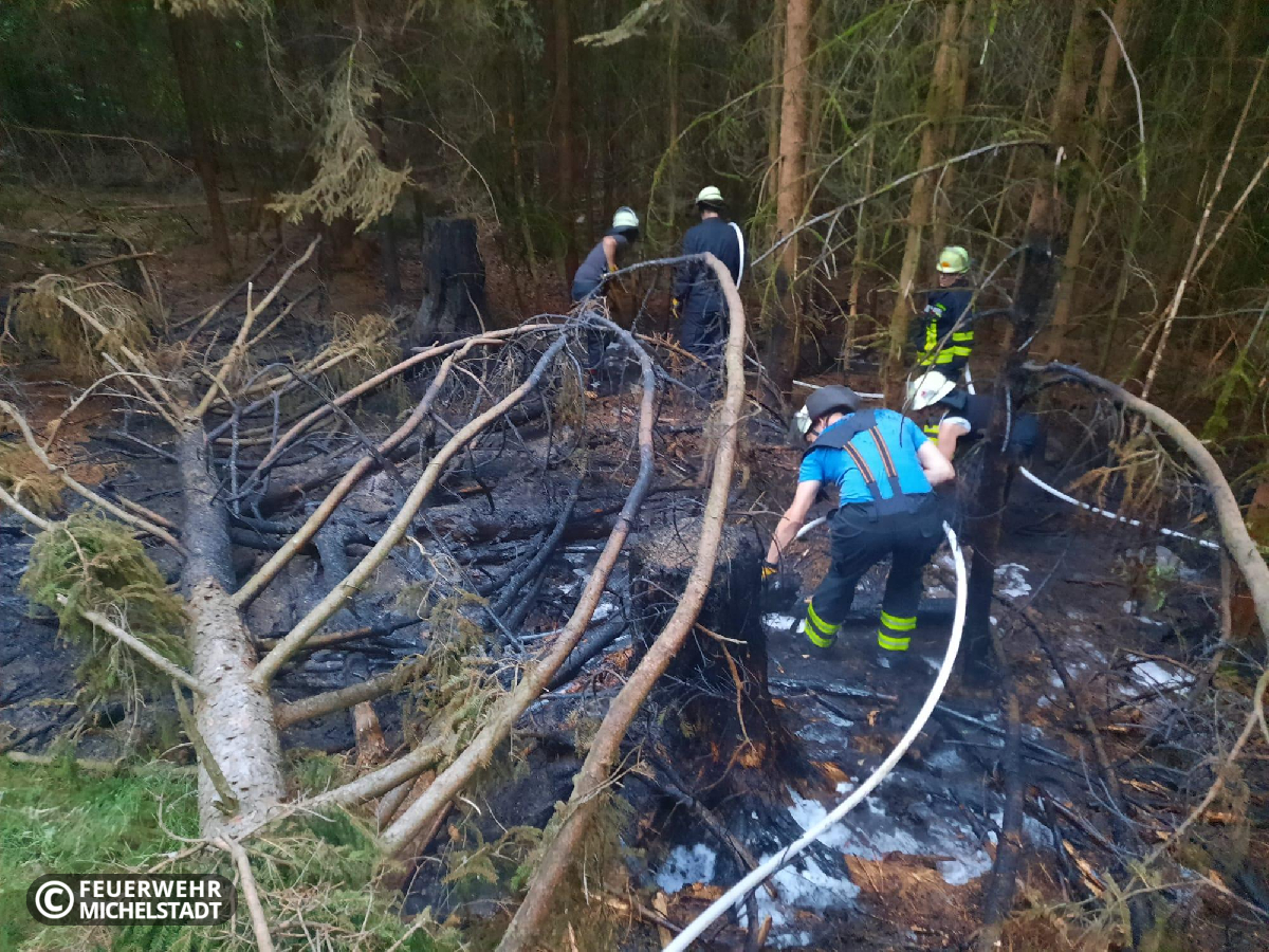 Wir wurden zu einem Waldbrand im Bereich des Friedwaldes alarmiert. Ein Bodenfeuer von ca. 200 Quadratmetern wurde mit 3 D-Rohren abgelöscht. Besonders war, dass sich die Einsatzstelle 300 Meter abseits eines Waldweges in unwegsamem Gelände befand.