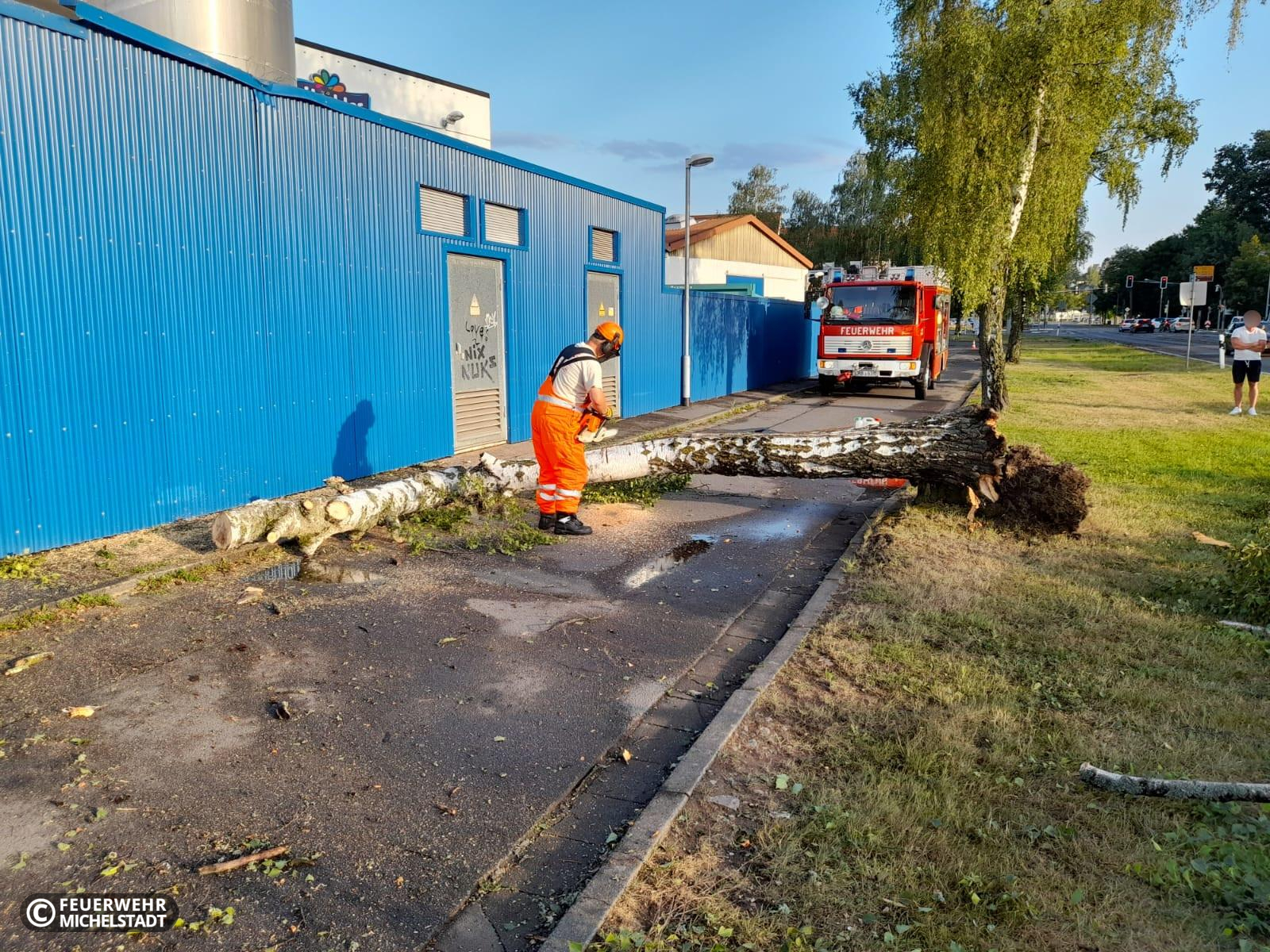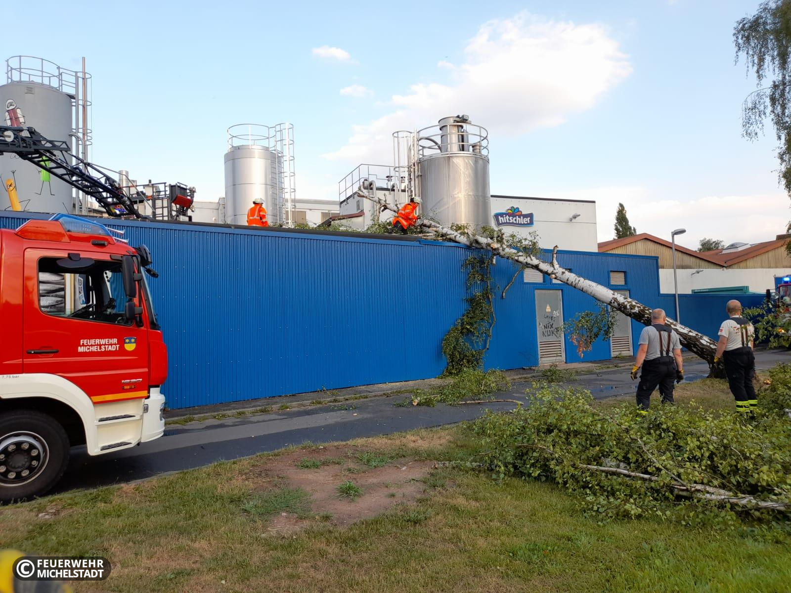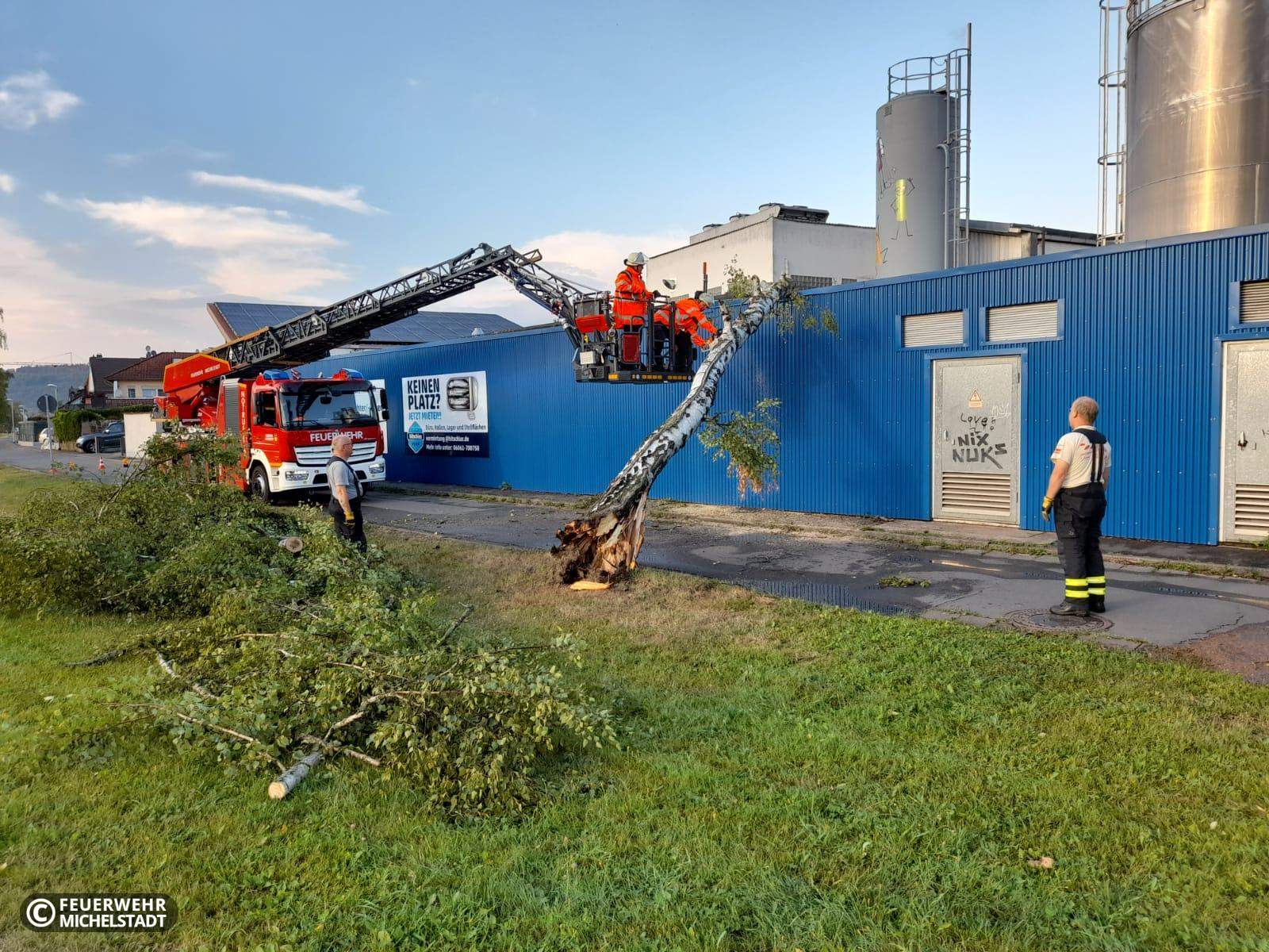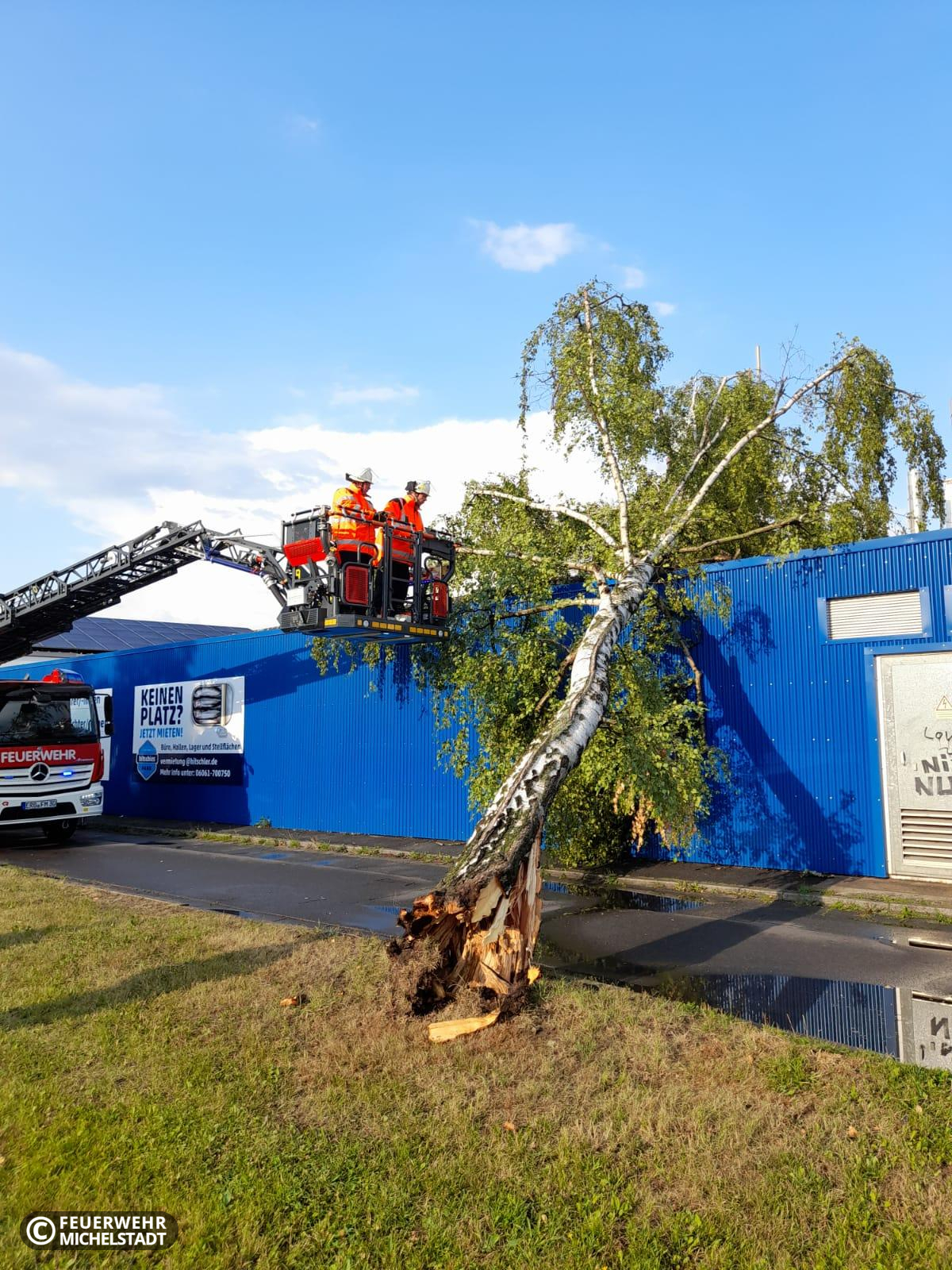 Ein Baum war auf ein Gebäude gestürzt. Wir entfernten ihn.