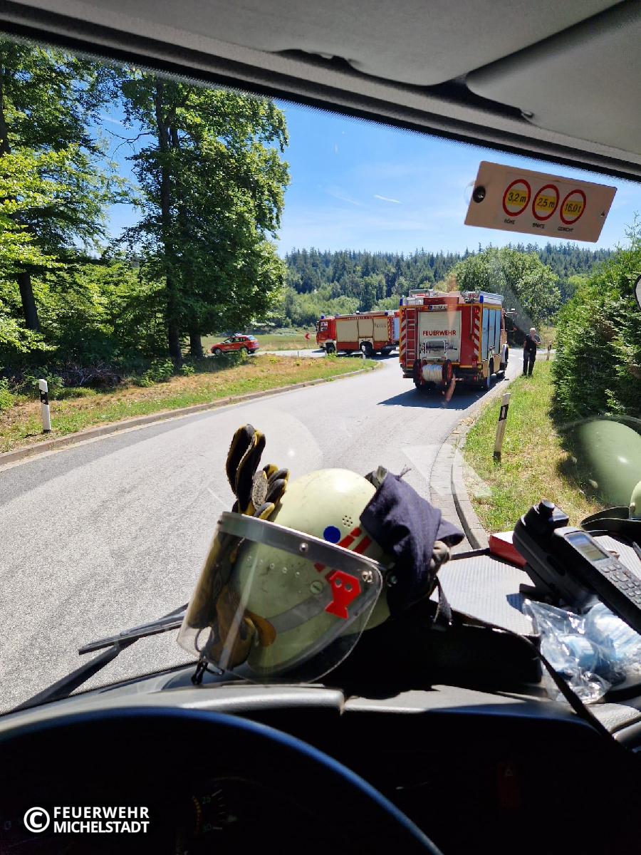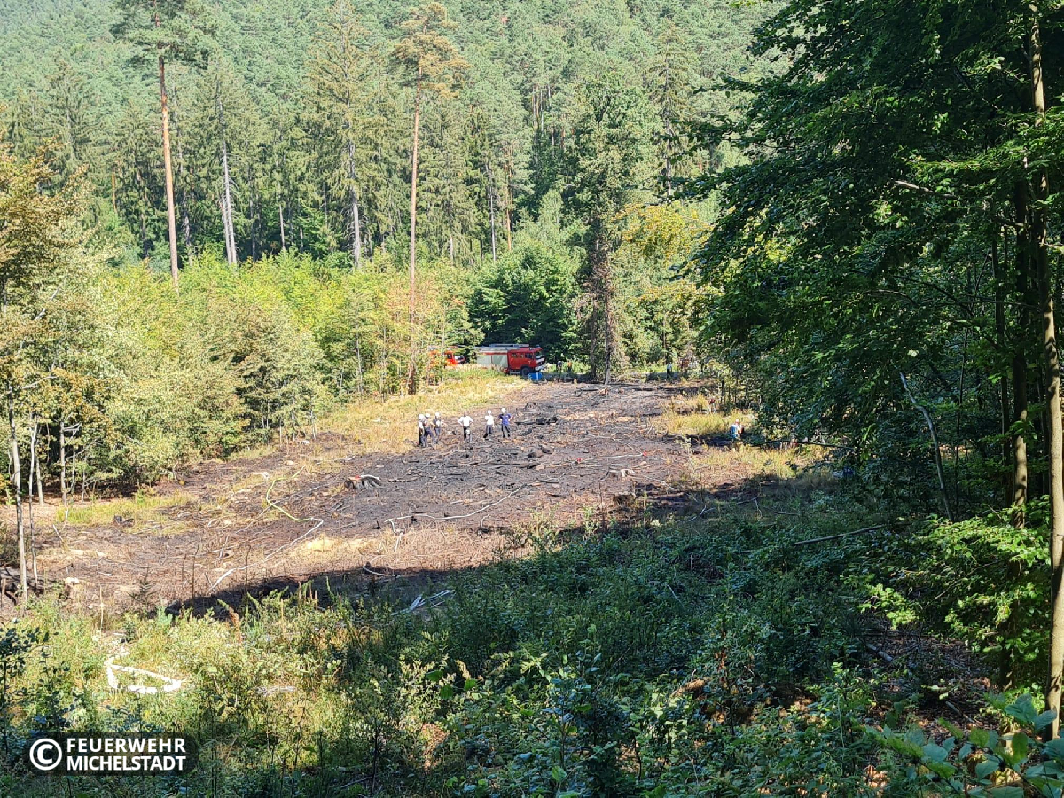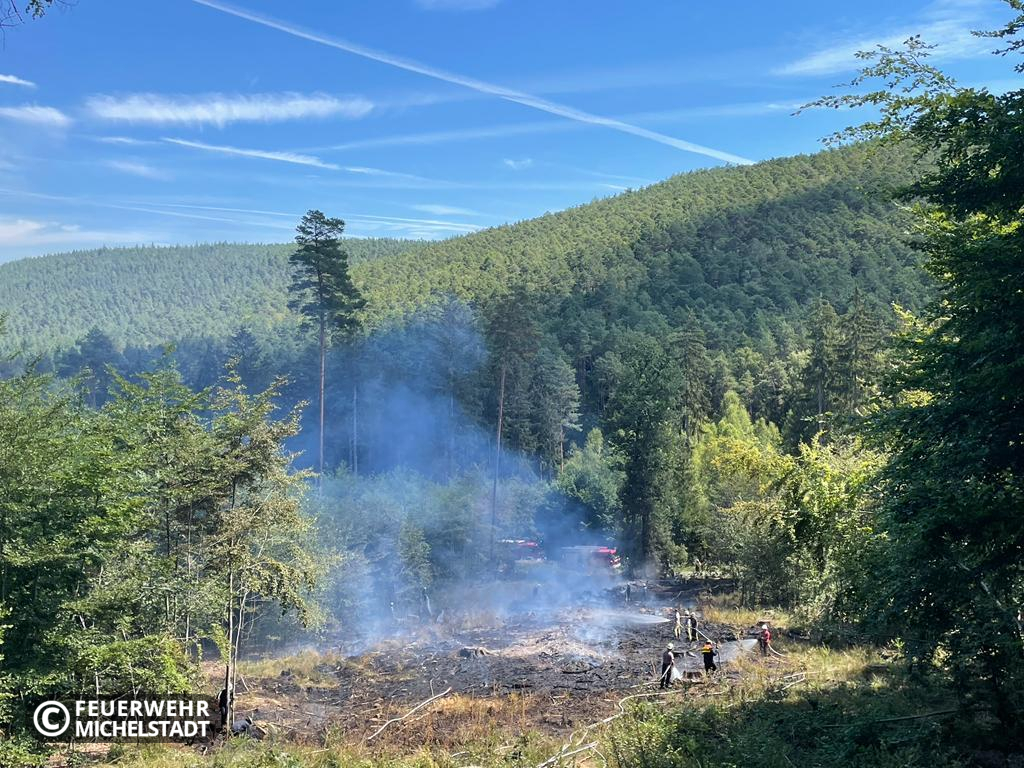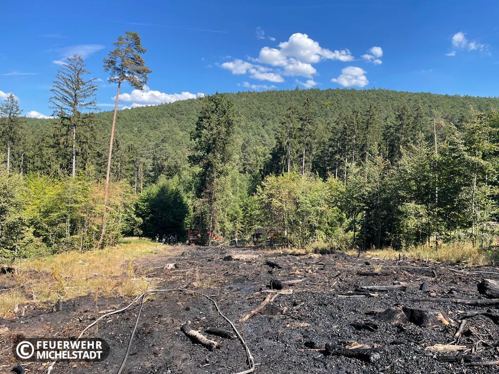 An der Landesgrenze Hessen/Bayern brannte eine gerodete Fläche von ca. 200 x 50 Meter. Das Feuer wurde durch ein Ultraleichtflugzeug entdeckt und der zuständigen Leitstelle gemeldet. Durch die eingesetzten Kräfte wurde das Feuer von zwei Seiten bekämpft. Dabei arbeiteten wir mit den Kameraden aus Bayern zusammen. Aufgrund der schwierigen Erreichbarkeit der Brandstelle wurden mehrere Tanklöschfahrzeuge im Pendelverkehr eingesetzt, um Wasser aus Bremhof, sowie Laudenbach zur Einsatzstelle zu bringen. Zusätzlich kam in der Erkundungsphase die Drohne der Kameraden aus Bad König zum Einsatz.