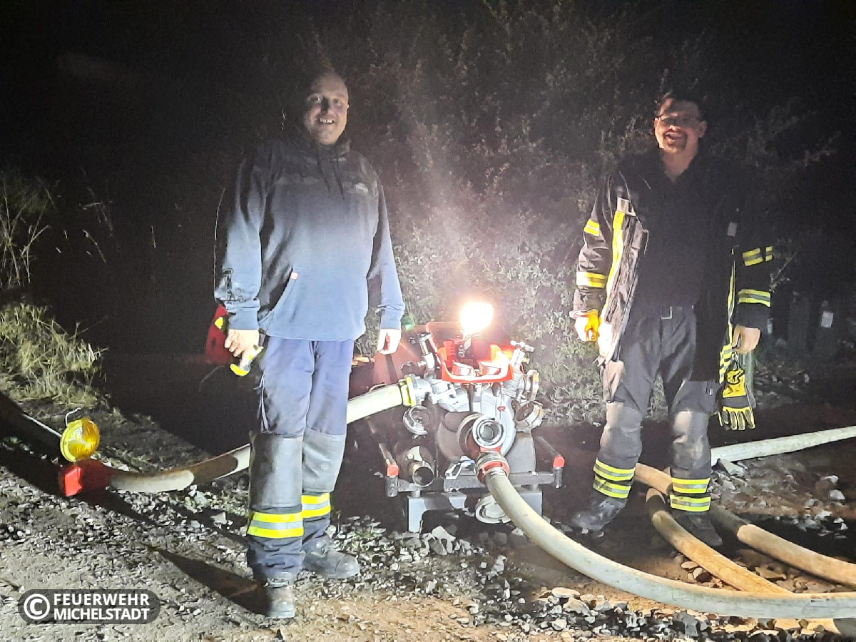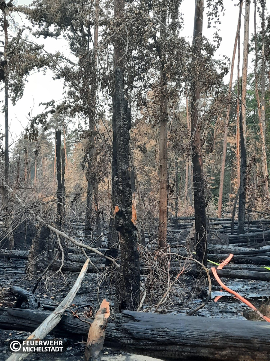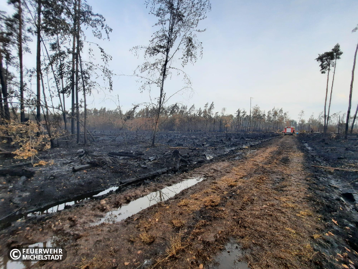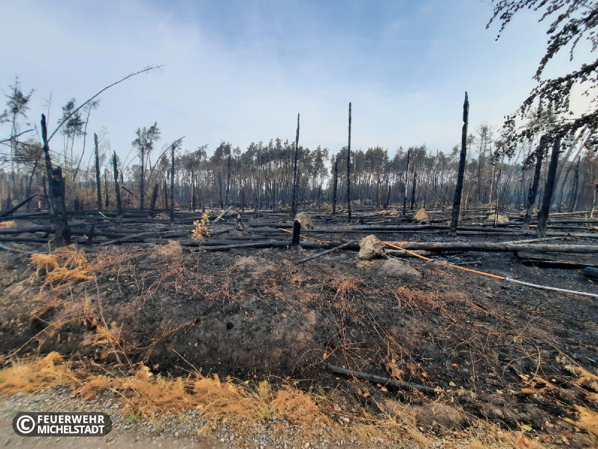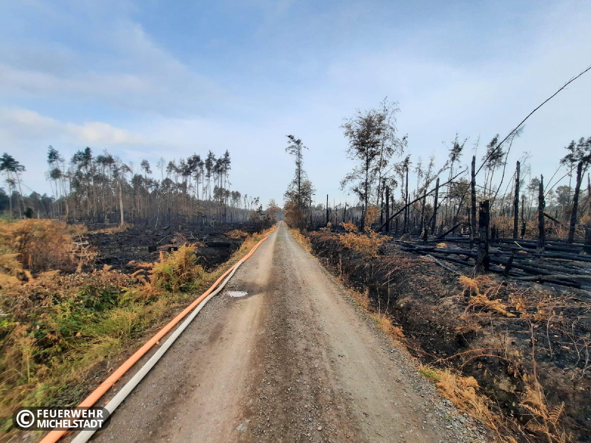 Die Feuerwehren der Stadt Michelstadt wurden erneut zur überörtlichen Hilfe während des bereits mehrere Tage andauernden Waldbrandes auf der ehemaligen Munitionsanstalt Muna bei Münster angefordert. Vor Ort stellten wir gemeinsam eine Einsatzabschnittsleitung zur Wasserförderung und überwachten mit Personal mehrere Verstärkerpumpen entlang der Förderstrecke. Dabei übernahmen wir eine 24-Stunden-Schicht, die wir mit zwei Gruppen in zweimal 12 Stunden abarbeiteten.