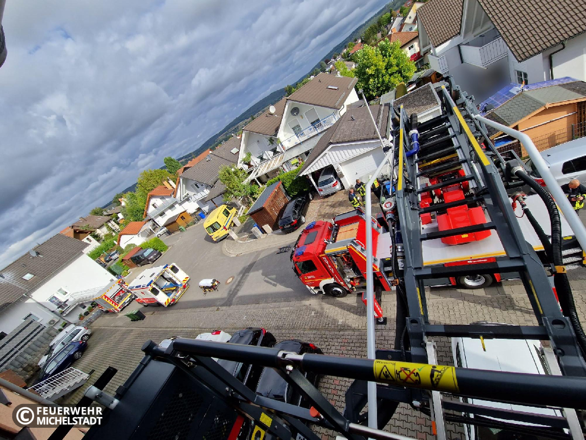 Für den Rettungsdienst wurde eine Person mithilfe der Drehleiter gerettet.