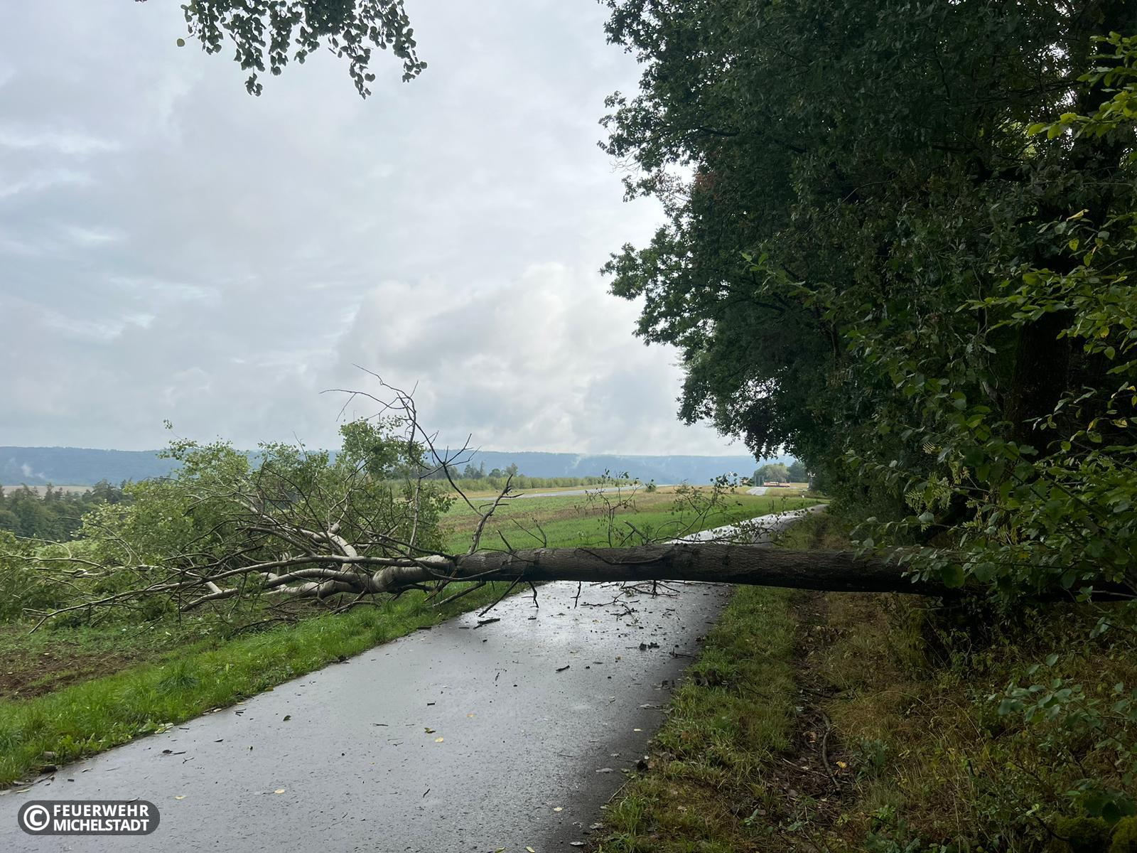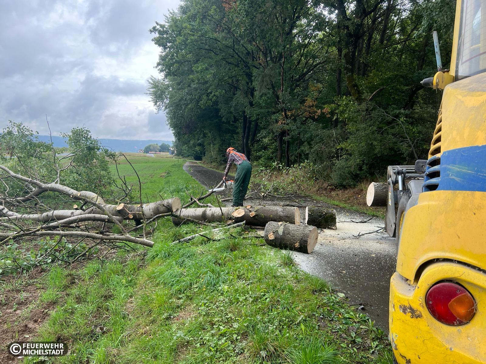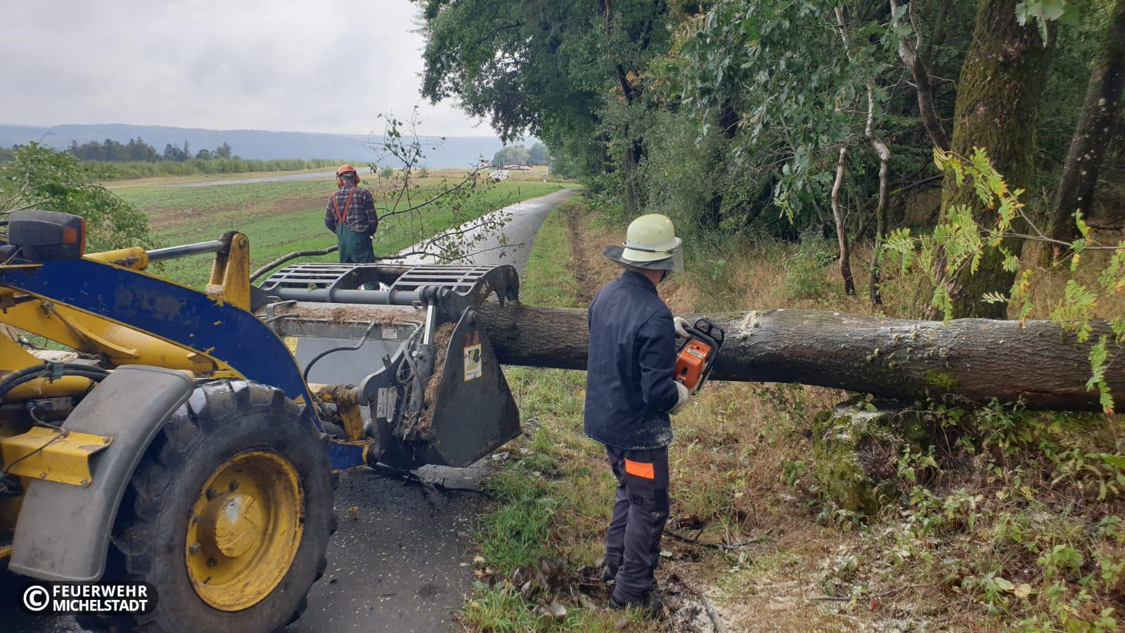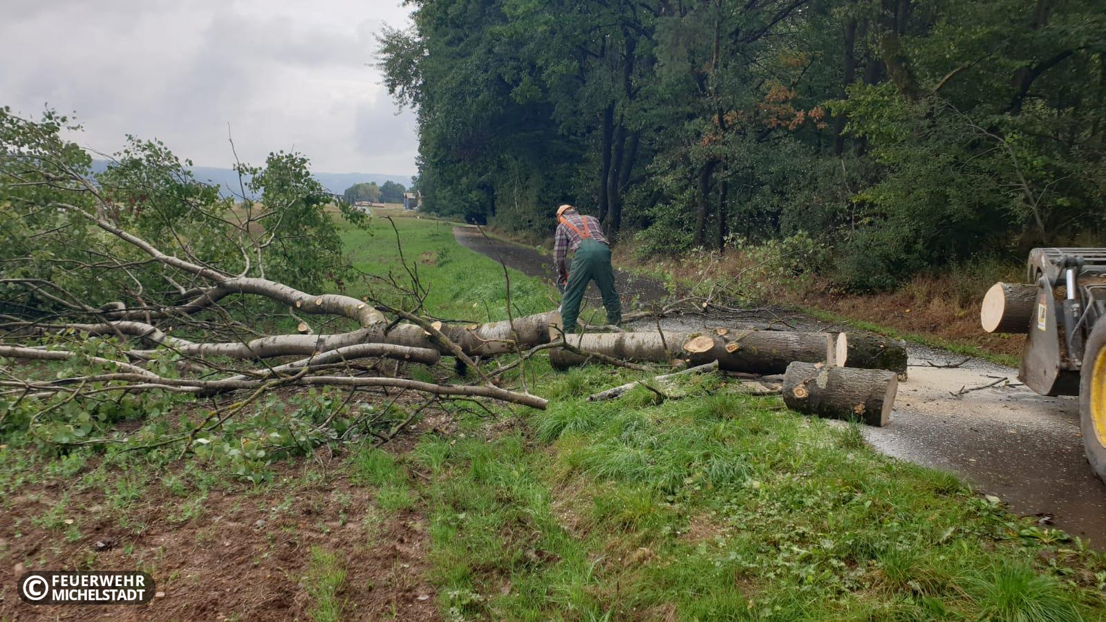 Auf dem Verbindungsweg vom Waldhorn nach Steinbuch versperrte ein umgestürzter Baum die Durchfahrt. Mit den Kameraden aus Steinbuch und mit der Unterstützung eines ortsansässigen Landwirts wurde der Baum beseitigt.