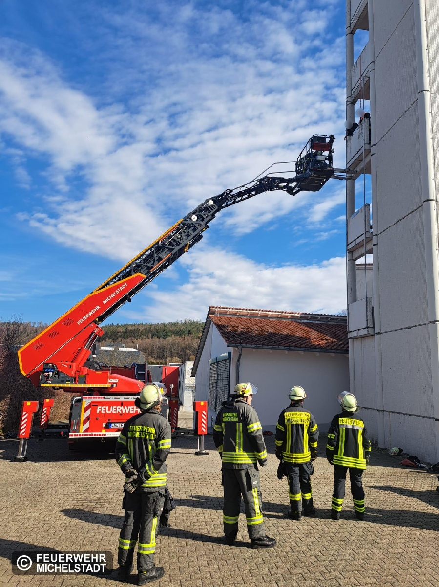 Bei einer Übung des Grundlehrgangs im Schlauchturm unseres Feuerwehrhauses verletzte sich eine Person. Sie wurde mittels Drehleiter gerettet und an den Rettungsdienst übergeben.