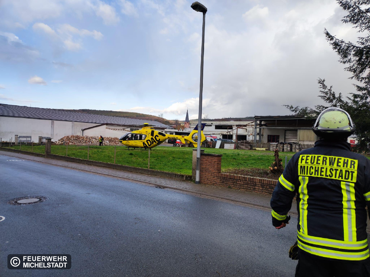 Der Rettungshubschrauber landete direkt an der Einsatzstelle. Wir sicherten den Bereich ab und unterstützen den Rettungsdienst beim Transport der verletzten Person.