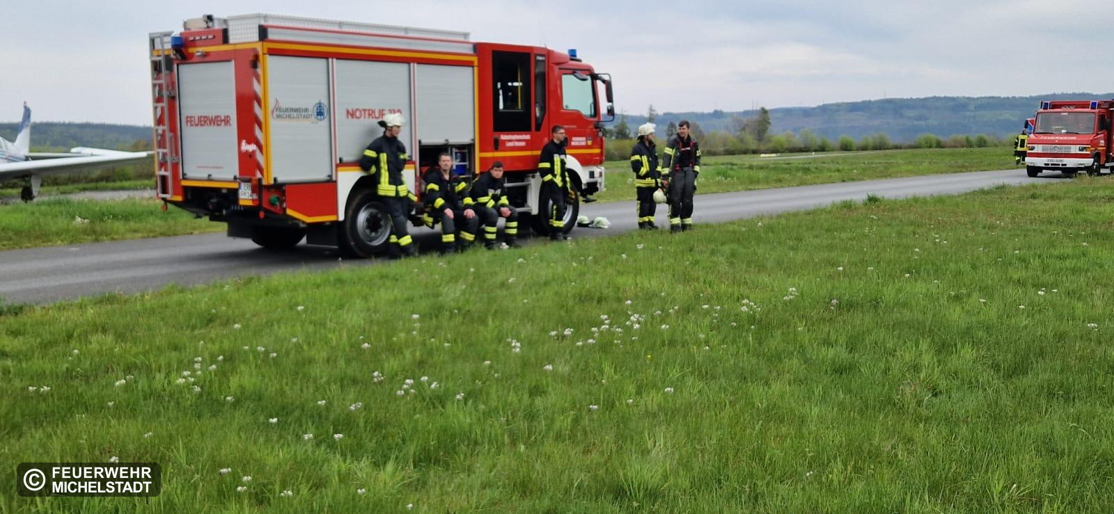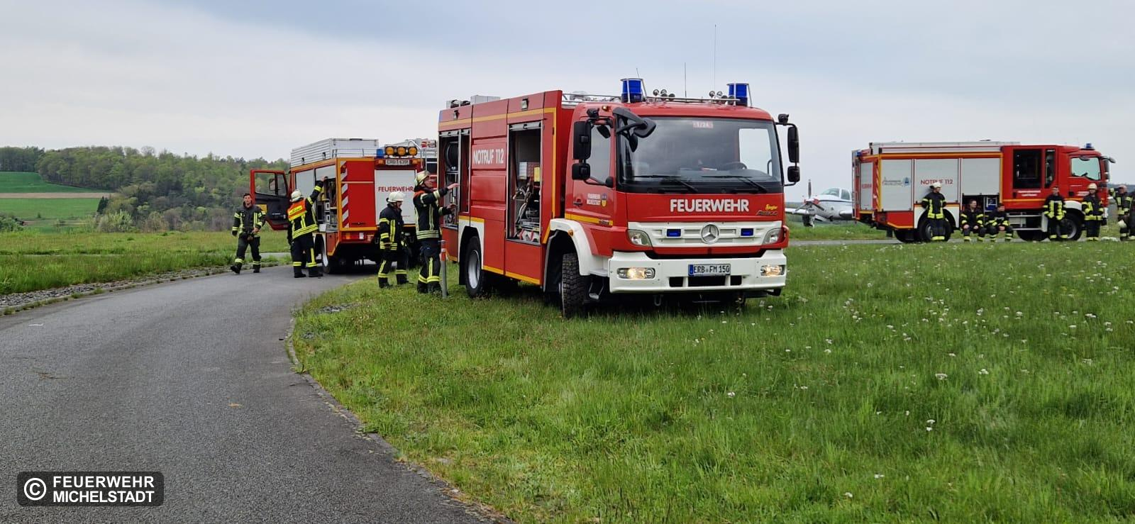 Wir sicherten die Einsatzstelle und stellten den Brandschutz sicher. Die Kräfte des Kampfmittelräumdienstes konnten nach mehreren Versuchen die Sprengladung für den Notfall-Fallschirm des Flugzeugs nicht entschärfen, weshalb sich der Einsatz verzögerte. Des Weiteren waren die Kameraden der Feuerwehr Bad-König mit einer Drohne, Kameraden der Feuerwehr Erbach mit dem Rüstwagen, sowie eine Einheit der Bergwacht vor Ort. Diese konnten zeitnah aus dem Einsatz entlassen werden.