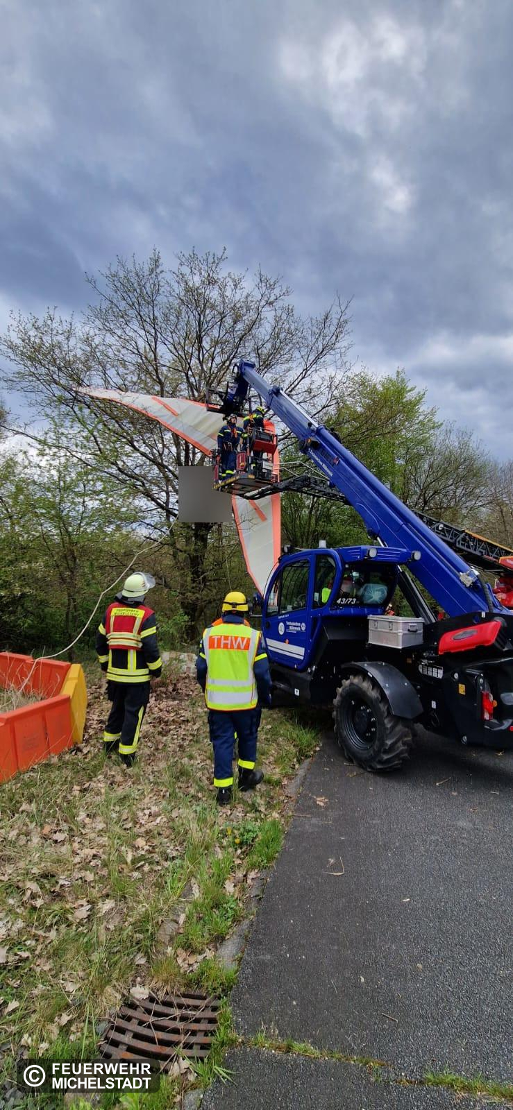 Schließlich bargen wir in Zusammenarbeit mit den THW-Ortsverbänden aus Michelstadt und Bensheim die Person und das Fluggerät.