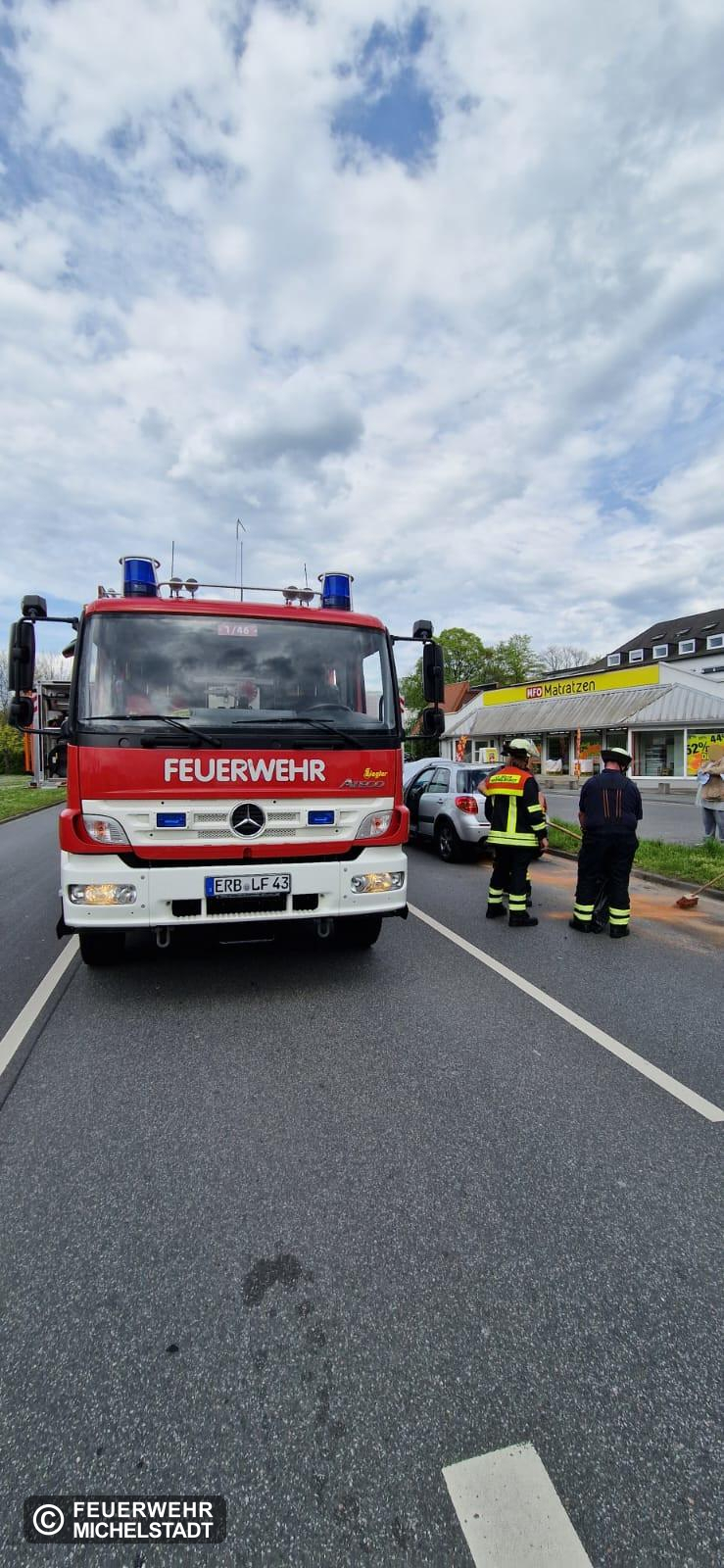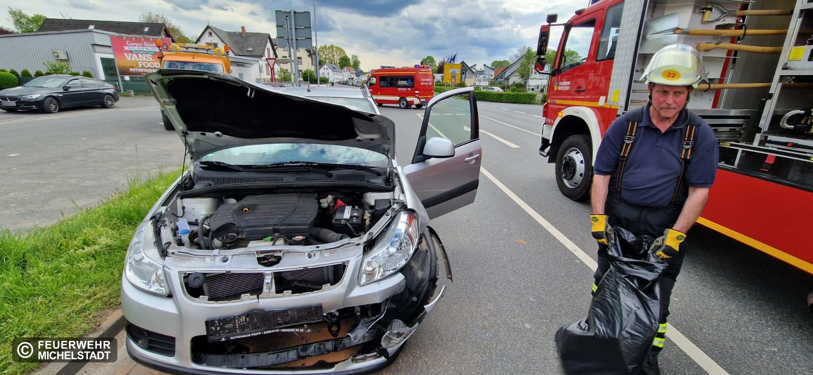 Es ereignete sich ein Auffahrunfall von 2 PKW in Fahrtrichtung Bad-König. Wir sicherten die Einsatzstelle gegen den fließenden Verkehr ab und stellten den Brandschutz sicher. Außerdem führten wir das Batteriemanagement durch und nahmen auslaufende Betriebsstoffe auf.