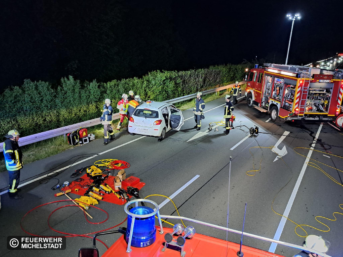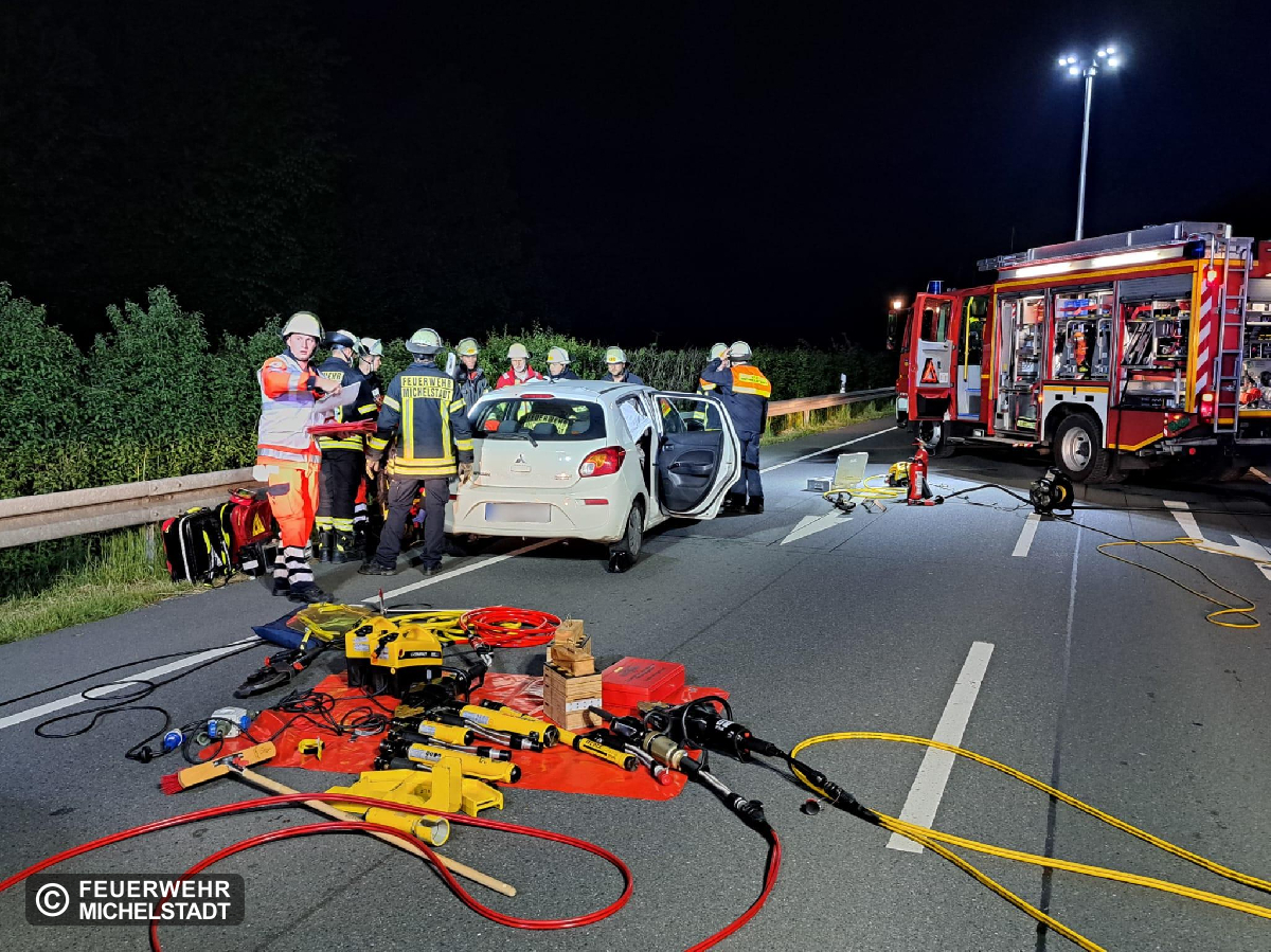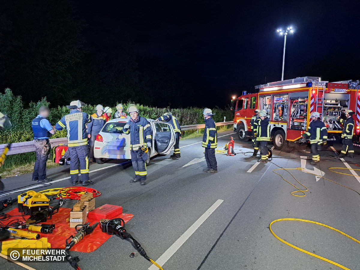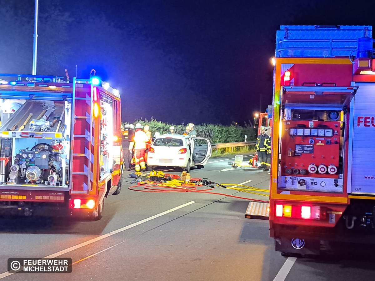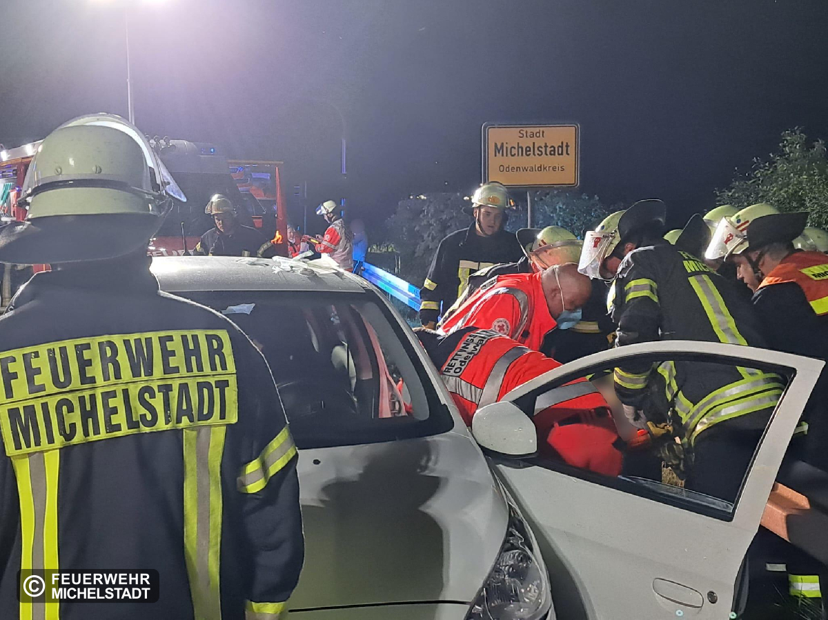 Im Kreuzungsbereich kam es zu einem Verkehrsunfall zwischen zwei PKW. Dabei wurde ein Person in ihrem Fahrzeug eingeschlossen. Wir befreiten die Person aus dem Fahrzeug und unterstützten anschließend den Rettungsdienst.