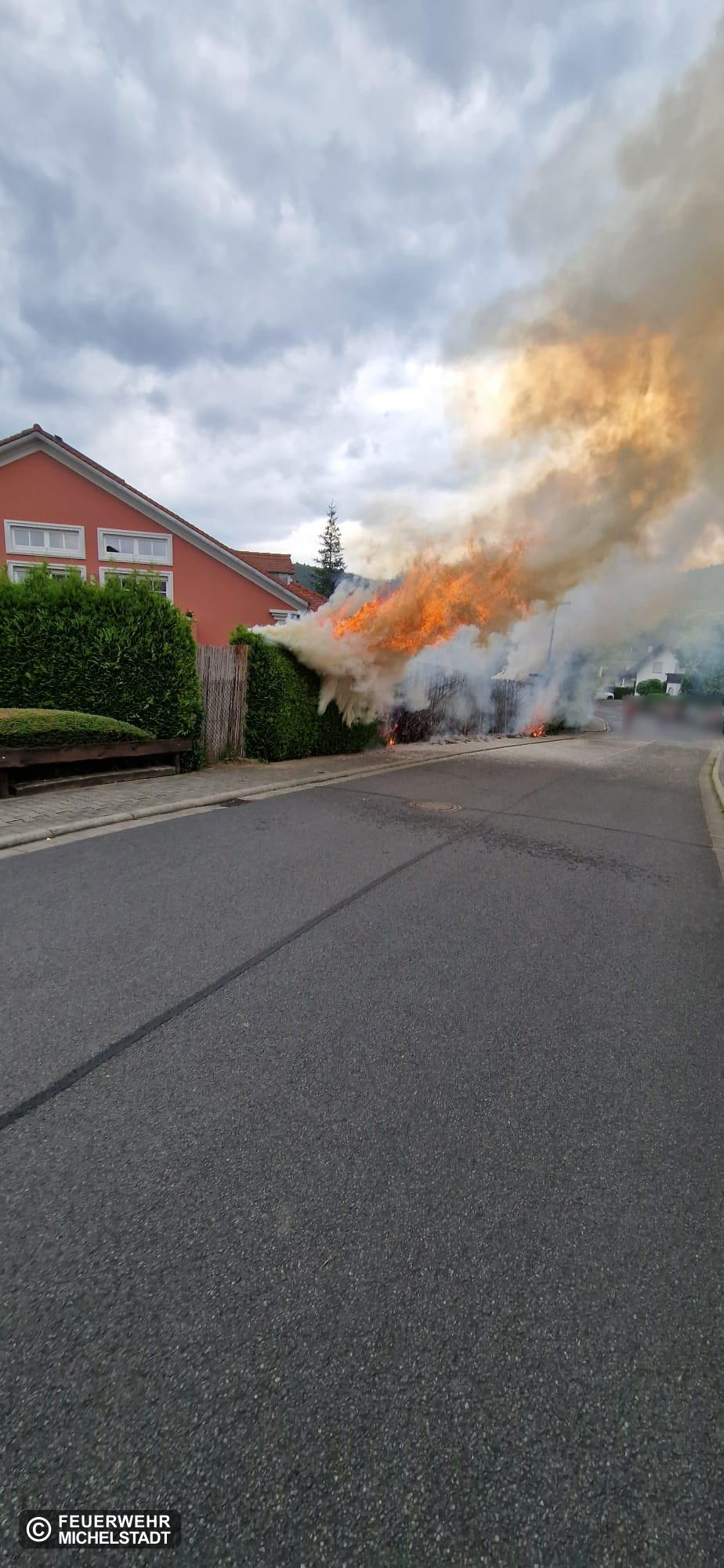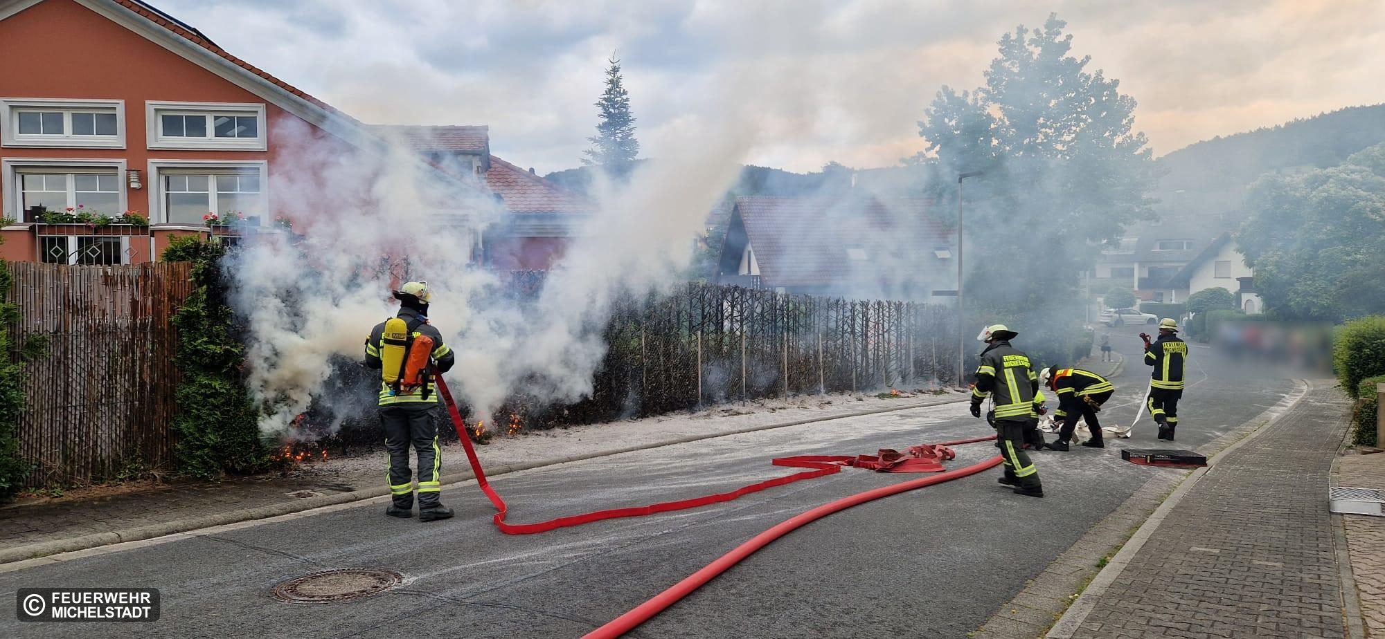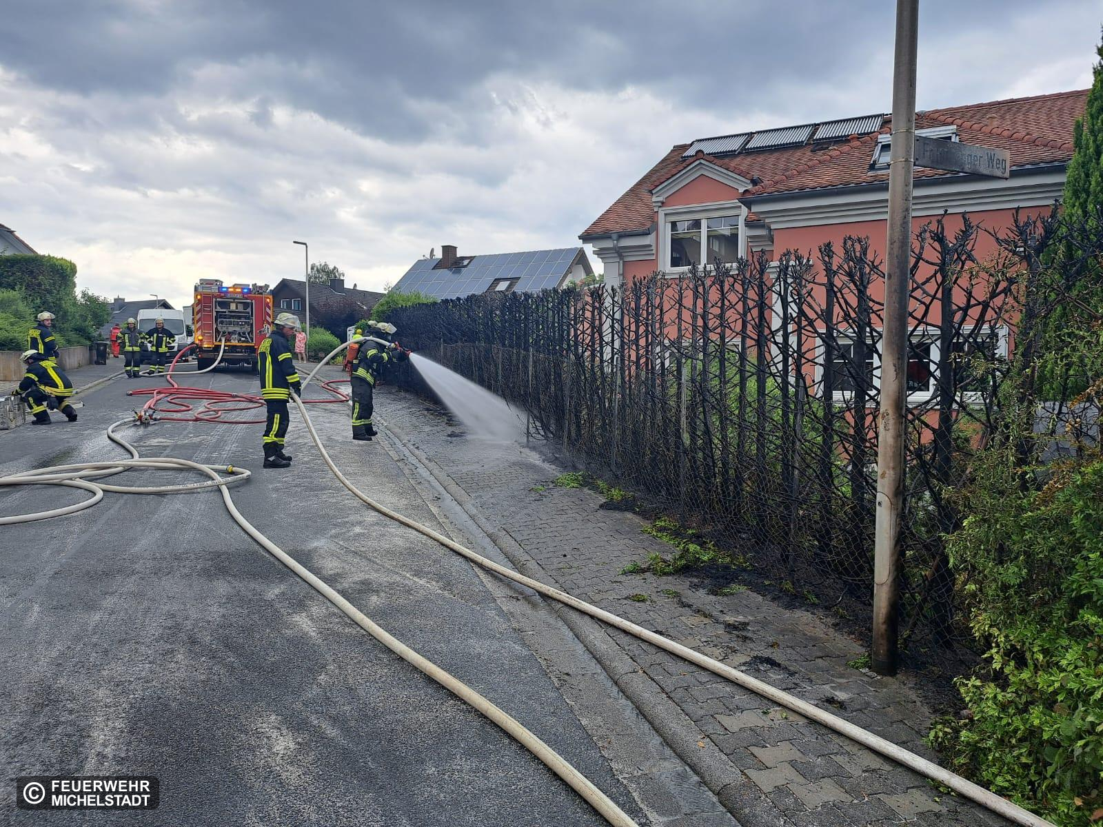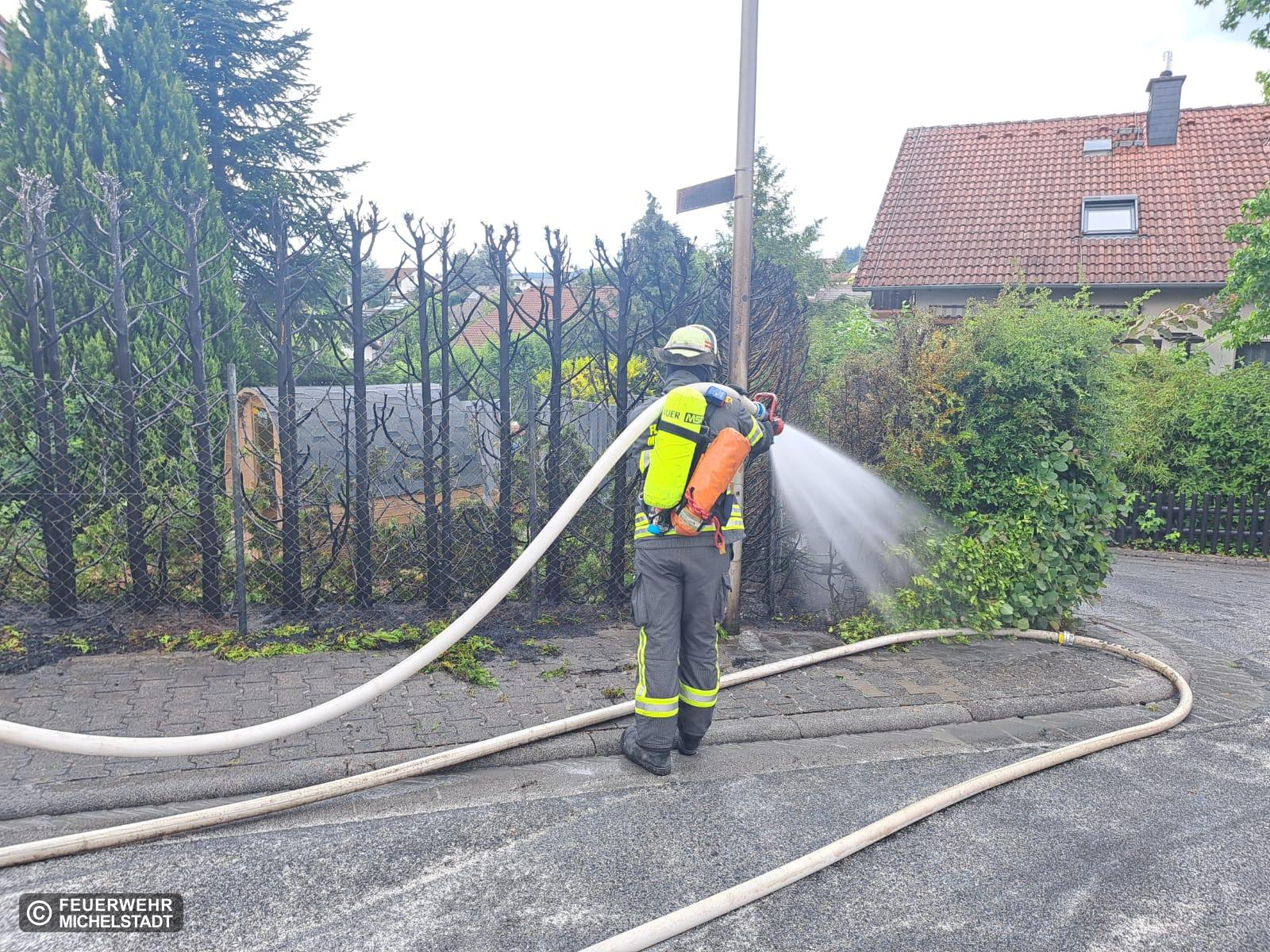 Gemeldet war ein Heckenbrand an einem Wohngebäude. Beim Ausrücken wurde durch die Leitstelle das Stichwort auf F2Y erhöht, da das Feuer auf das Gebäude übergegriffen hätte und nicht bekannt war, ob sich noch Personen im Gebäude befinden. Die brennende Hecke wurde mit 2 C-Hohlstrahlrohren abgelöscht und ein Übergreifen auf das Gebäude verhindert. Abschließend kontrollierten wir die Hecke mit der Wärmebildkamera auf Glutnester.