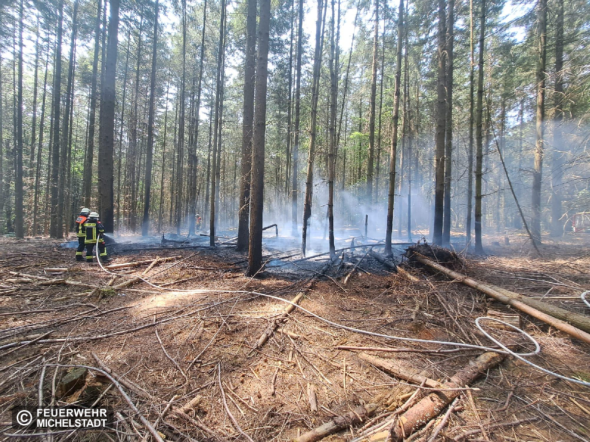 Die Kameraden aus Erbach wurden zu einem Waldbrand alarmiert. Nach dem Eintreffen unternahmen die Kameraden aus Beerfelden mit der Drohne Erkundungsfllüge. Nachdem das Feuer lokalisiert werden konnte, wurden wir zur Unterstützung alarmiert. Es wurden insgesamt 3 D-Strahlrohre vorgenommen. Im weiteren Einsatzverlauf wurde der Boden mit Werkzeug gelockert, um die letzten Glutnester zu löschen. Wir unterstützten außerdem bei der Wasserversorgung mit unseren Tanklöschfahrzeugen.
