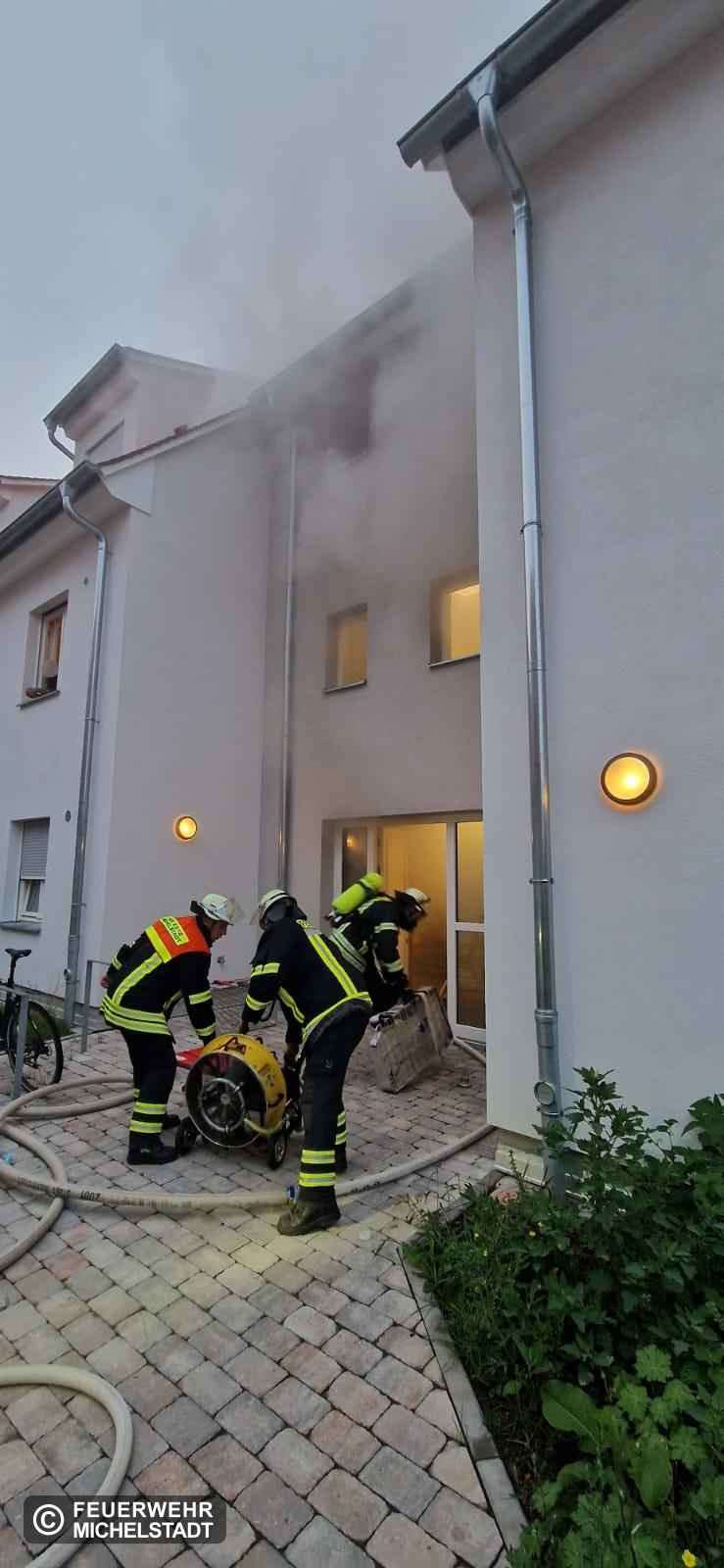 Es wurde ein Kellerbrand in einem Mehrfamilienhaus gemeldet. Beim Eintreffen war eine starke Rauchausbreitung im Treppenraum festzustellen, die mittels mobilem Rauchabschluss begrenzt werden konnte. Außerdem befanden sich noch Personen in den Wohnungen. Diese wurden über tragbare Leitern über Fenster und Balkone, sowie mittels Fluchthauben über das Treppenhaus gerettet. Insgesamt wurden 14 Personen gerettet und dem Rettungsdienst übergeben.