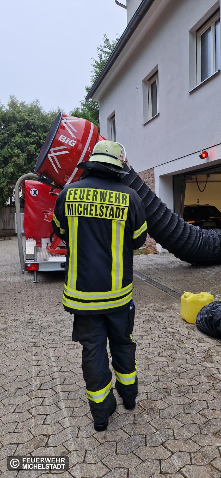 Die Kameraden aus Bad König stellten unterdessen den Grundschutz für die Stadt Michelstadt sicher. Die Feuerwehr Zell unterstützte uns bei der Einsatzstellenhygiene, um die kontaminierte Einsatzkleidung fachgerecht zu handhaben. Des Weiteren wurde die Feuerwehr Erbach mit dem Abrollbehälter Atemschutz eingesetzt.