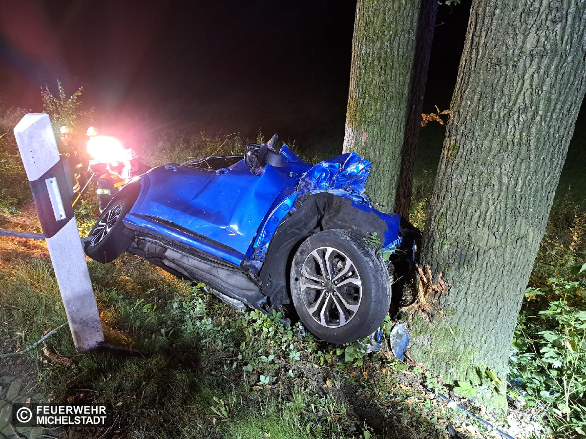 Auf der B47 in Fahrtrichtung Rehbach ereignete sich ein Auffahrunfall eines PKW frontal gegen einen Baum. Beim Eintreffen war die betroffene Person leider bereits verstorben. Wir sicherten den PKW gegen Abrutschen und stellten den Brandschutz sicher. Außerdem leuchteten wir die Einsatzstelle aus und nahmen ausgelaufene Betriebsmittel auf.