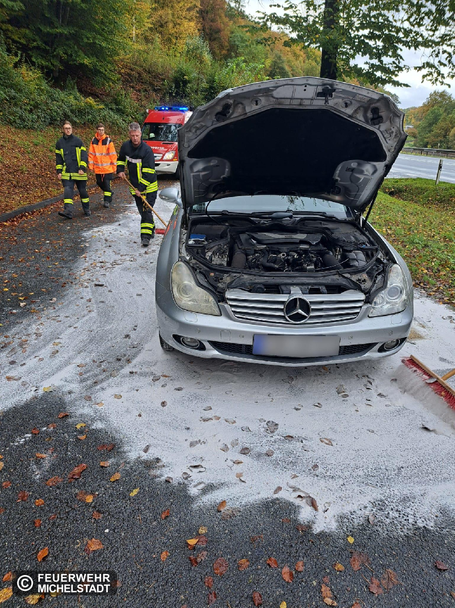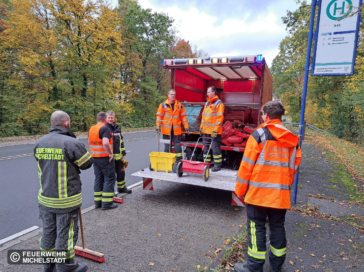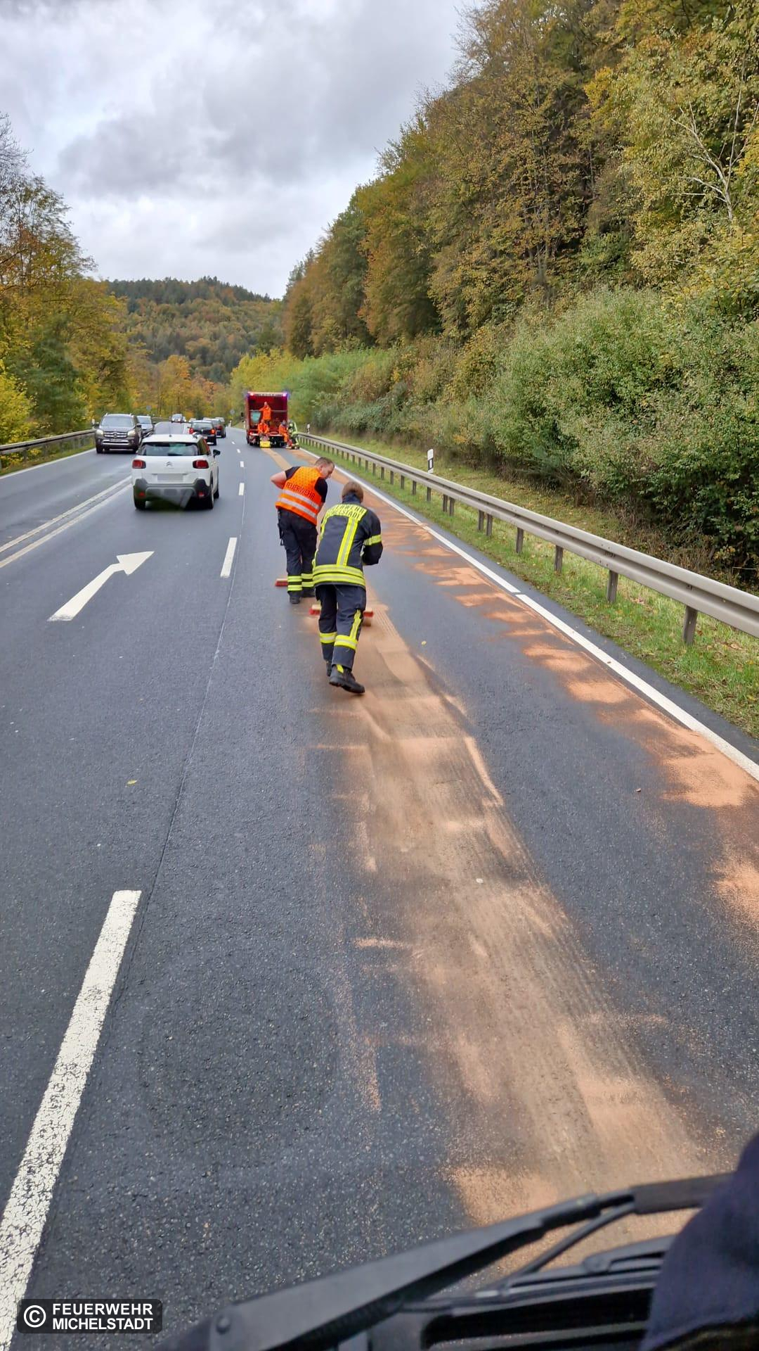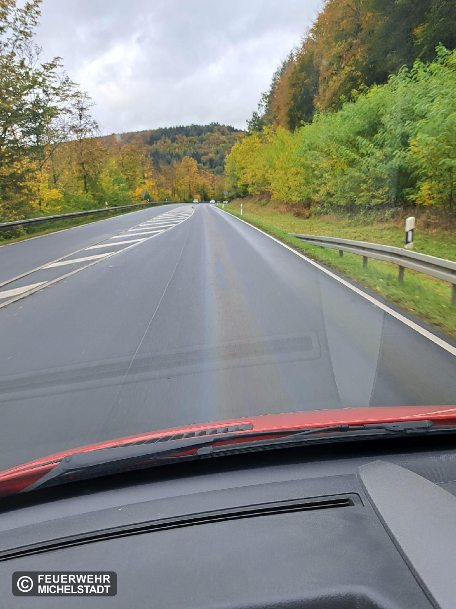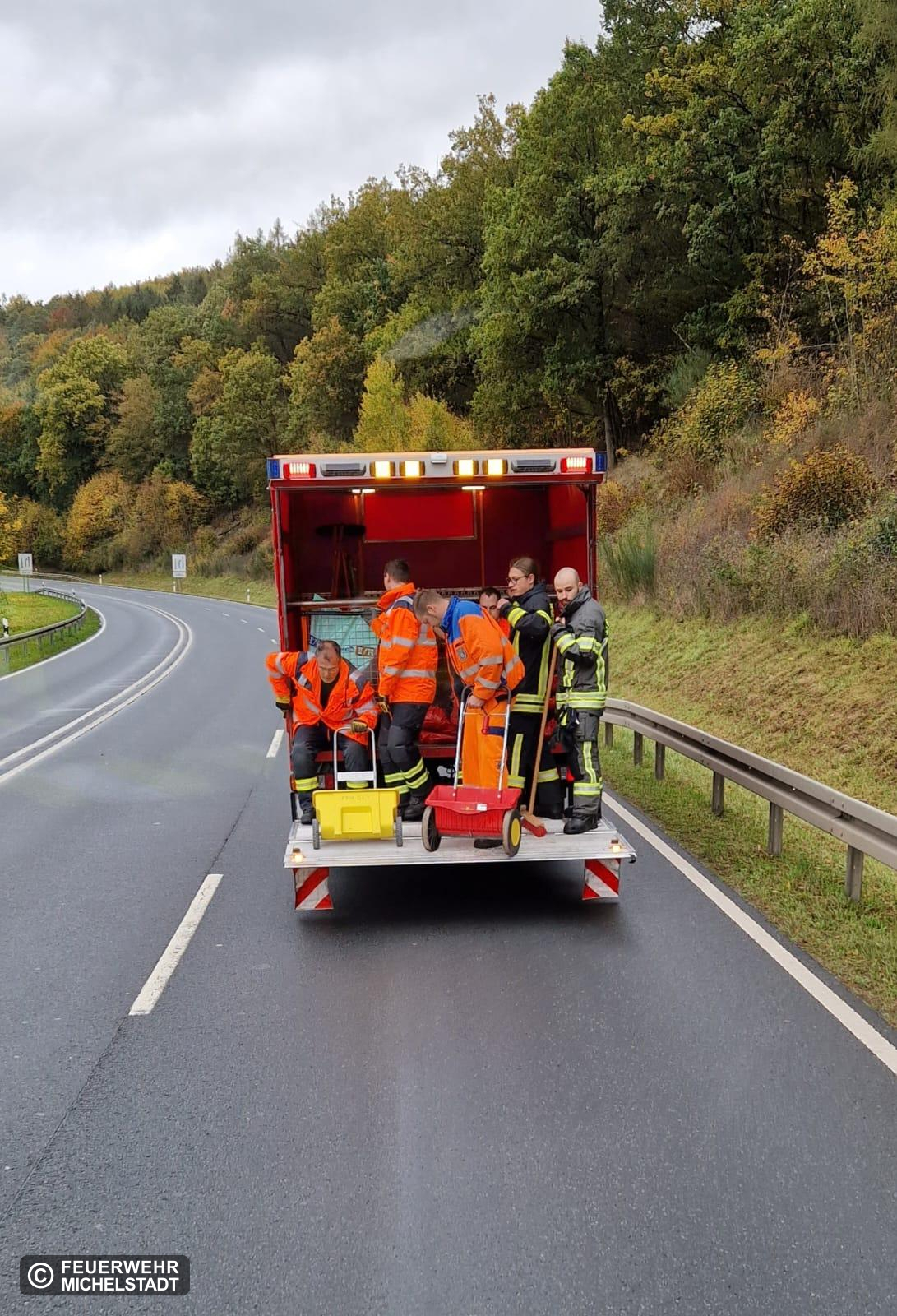 Durch einen Defekt am Motor hatte ein Fahrzeug Motoröl auf der Fahrbahn verloren. Aufgrund der Gefahrenlage wurden wir in Amtshilfe gemeinsam mit Hessenmobil tätig.