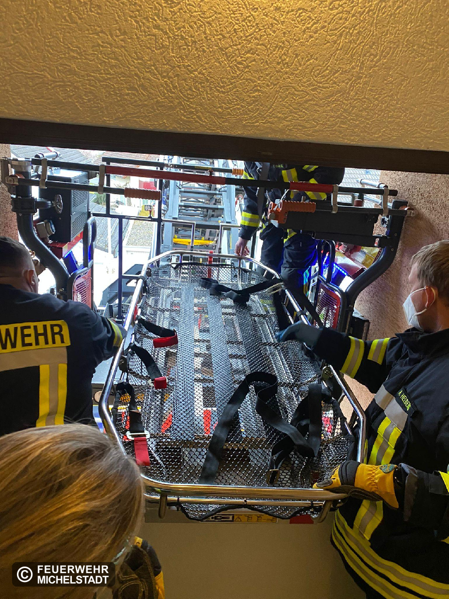 Wir wurden zur Rettung einer bewusstlosen Person über die Drehleiter alarmiert. Gemeinsam mit den Kameraden aus Stockheim wurde die Personenrettung durchgeführt.