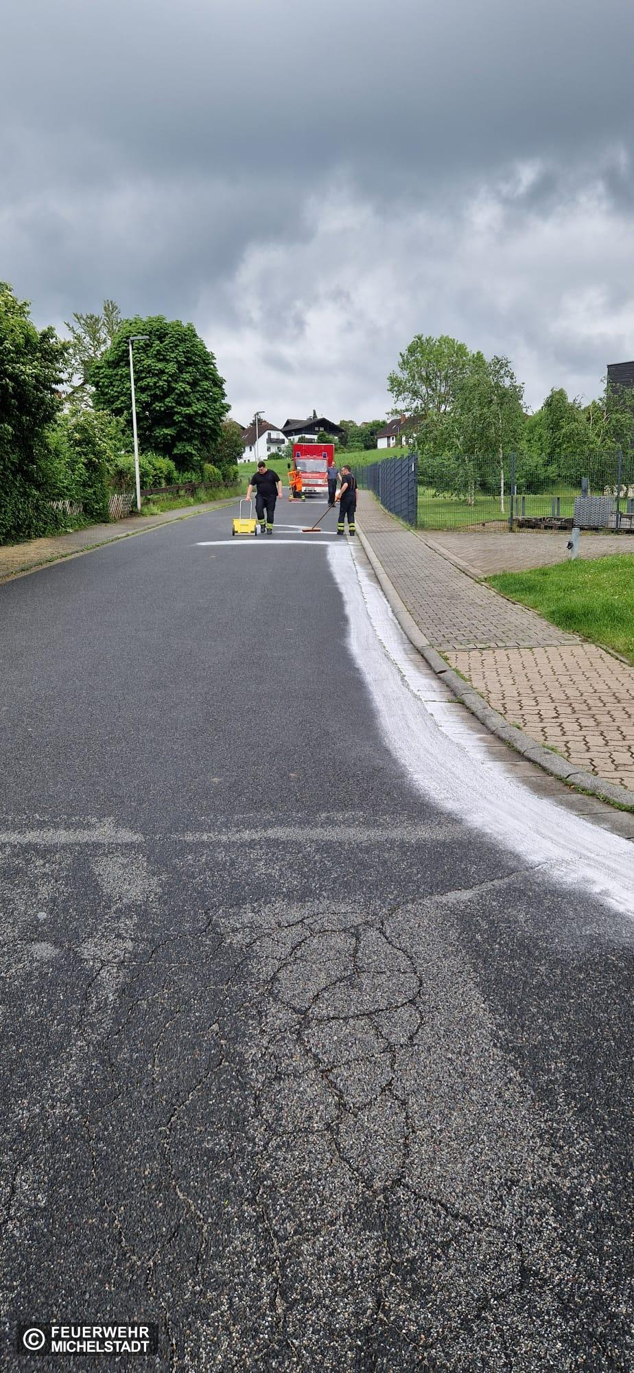 Durch die Polizei wurde eine Ölspur in der Dr.-Leber-Straße gemeldet. Nach der Erkundung wurde festgestellt, dass sich die Ölspur auch noch in der Geschwister-Scholl-Straße und Taunusstraße fortsetzte. Wir streuten die betroffenen Stellen ab.
