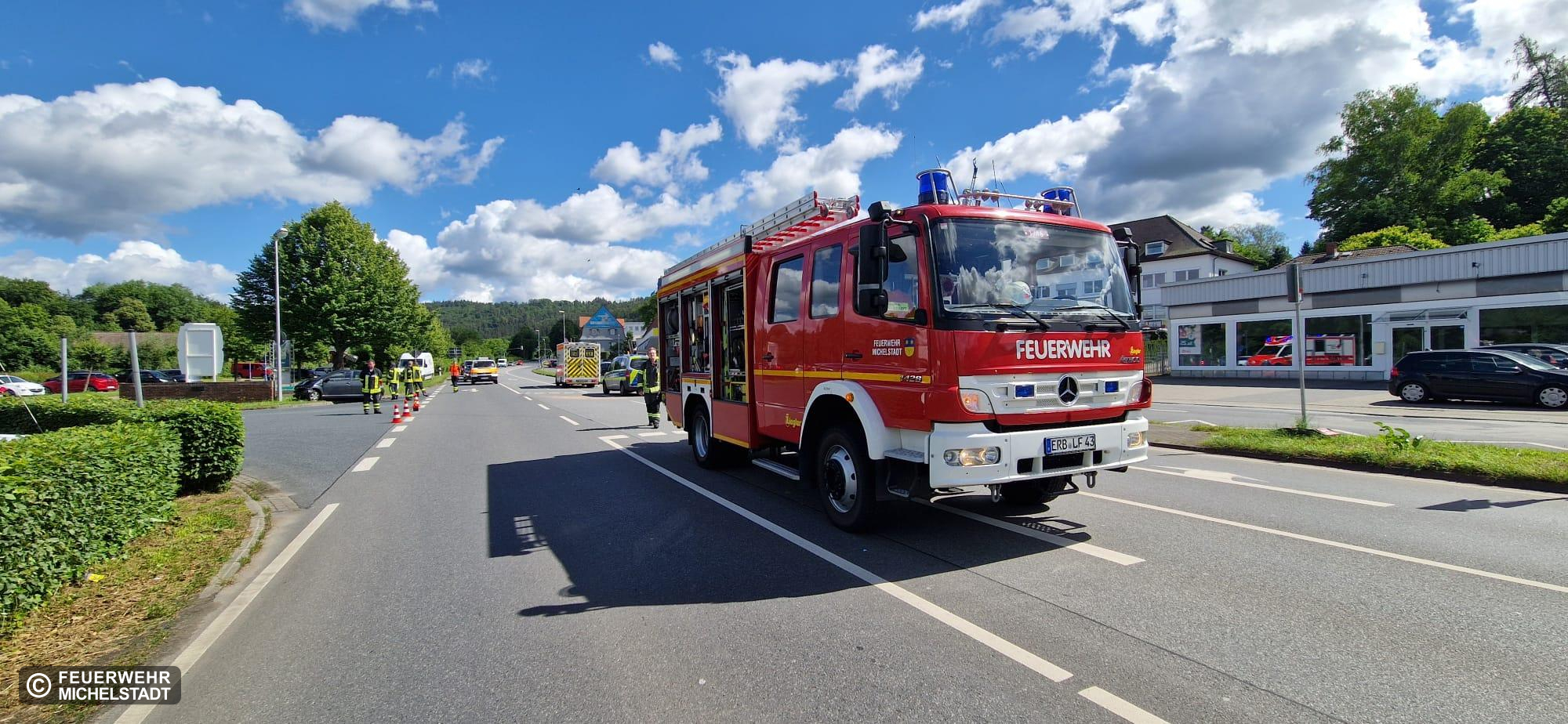 Auf der B45 ereignete sich ein Verkehrsunfall zwischen zwei PKW, bei denen ebenfalls parkende Fahrzeuge beschädigt wurden. Die Fahrzeuginsassen konnten noch vor unserer Ankunft befreit werden. Wir sicherten die Unfallstelle gegen den fließenden Verkehr und auslaufende Betriebsstoffe ab.