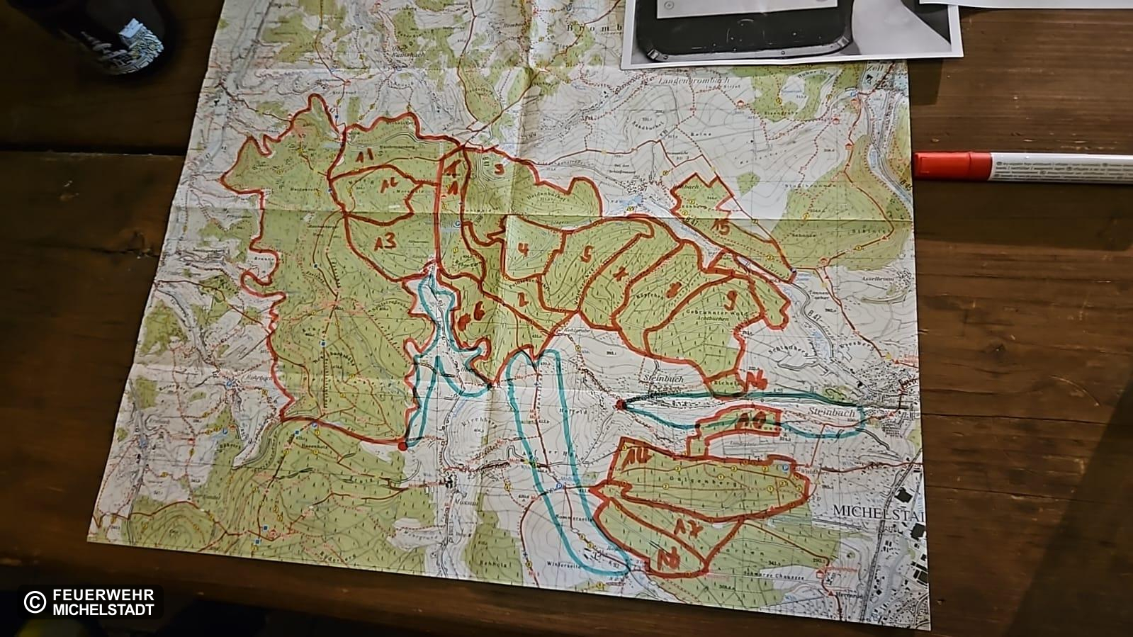 Alarmiert wurde der Einsatzleitwagen zur Koordinierung einer Personensuche im Bereich Steinbuch. Vor Ort wurde die Lage mit der Polizei besprochen und weitere Einheiten alarmiert. Das Gebiet wurde in verschiedene Abschnitte eingeteilt und die Kräfte koordiniert.