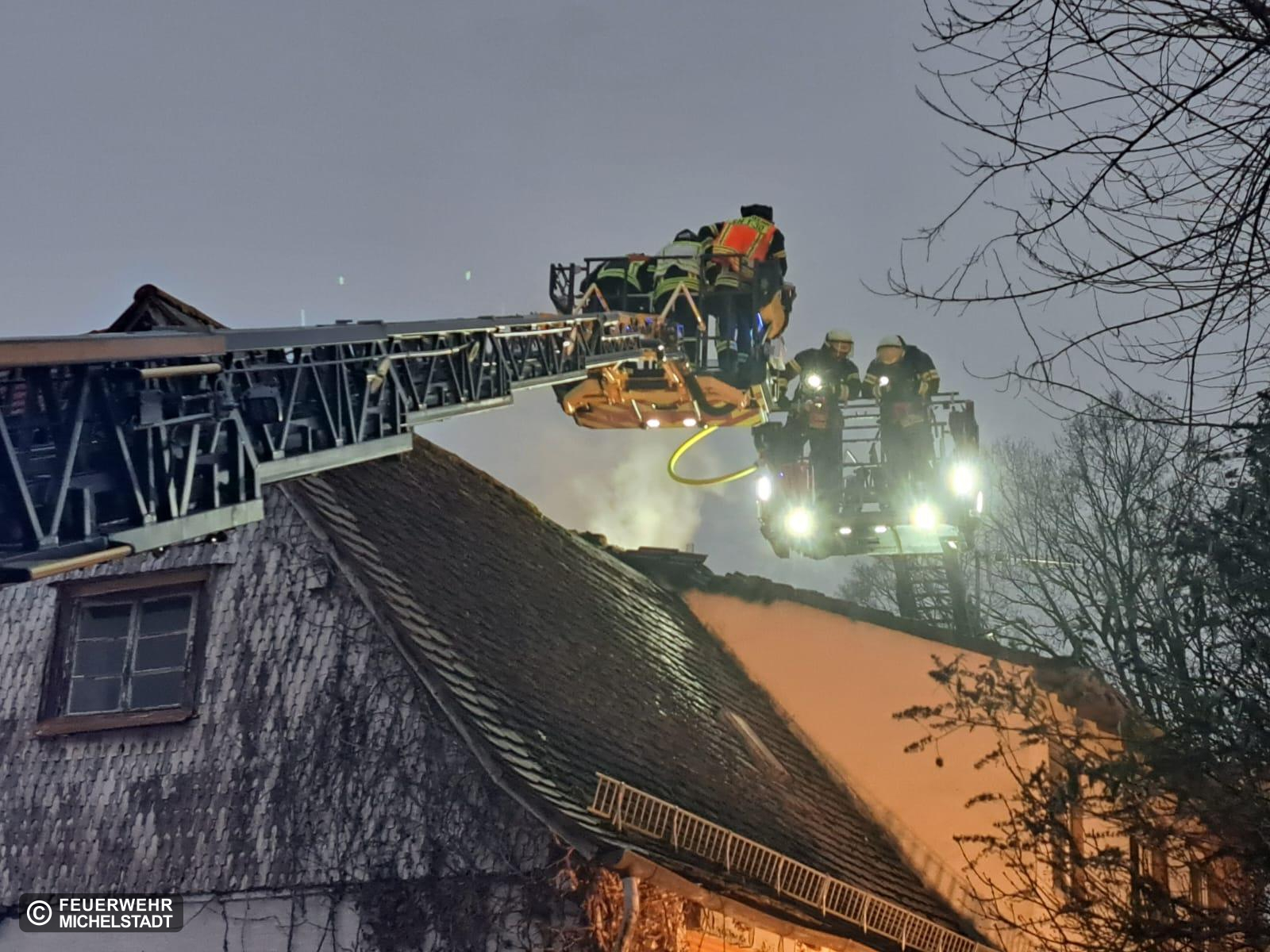 Es wurde von mehreren Anrufenden ein Dachstuhlbrand in Steinbach gemeldet. Vor Ort bestätigte sich die Lage. Der Bewohner hatte sich bereits vor unserem Eintreffen ins Freie begeben. Es wurden noch zwei Katzen vermisst, die im Verlauf des Einsatzes gerettet werden konnten.