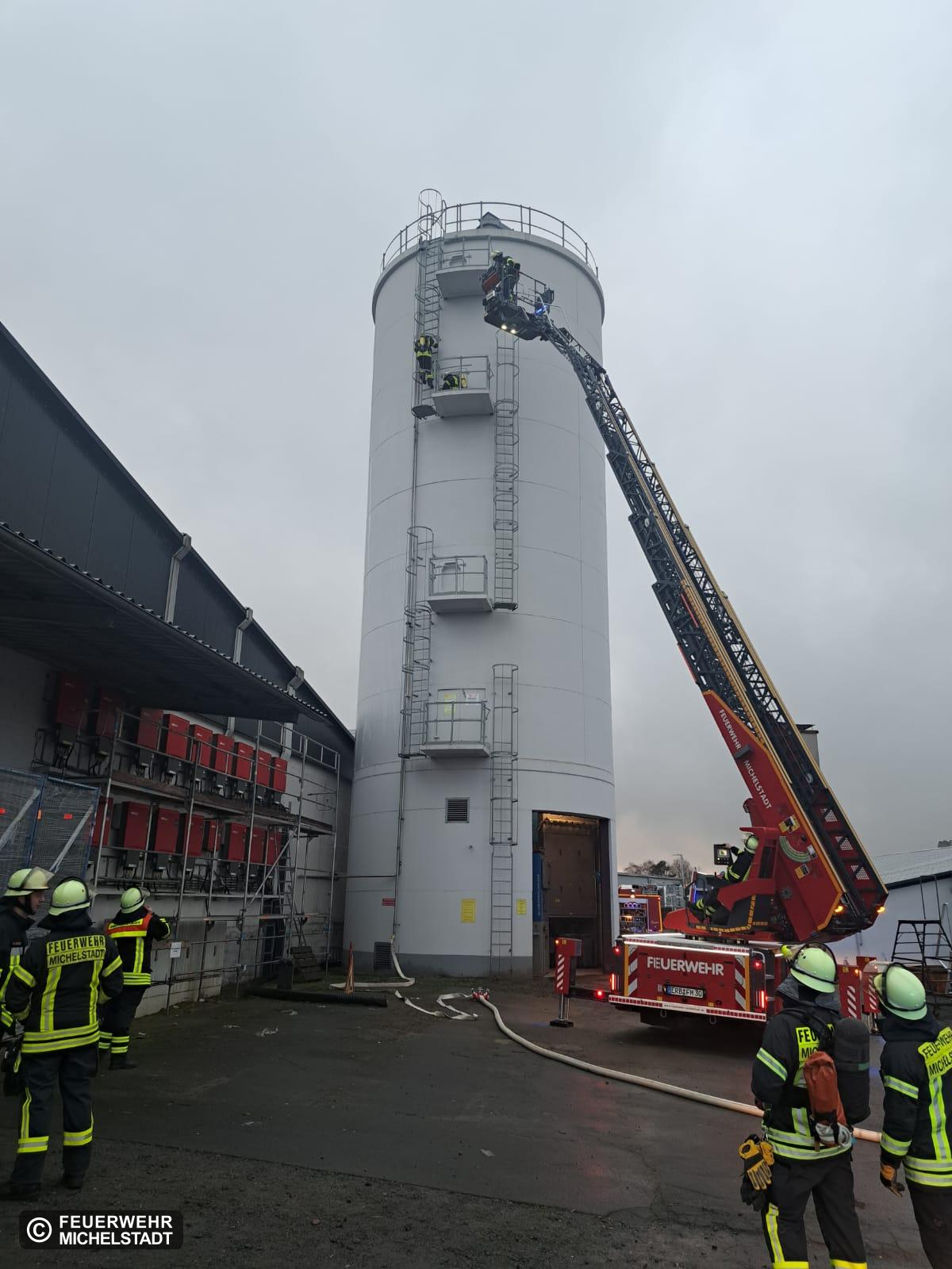 Gemeldet war ein vermuteter Brand im Spänesilo. Nach den Erkundungsmaßnahmen bestätigte sich die Lage.