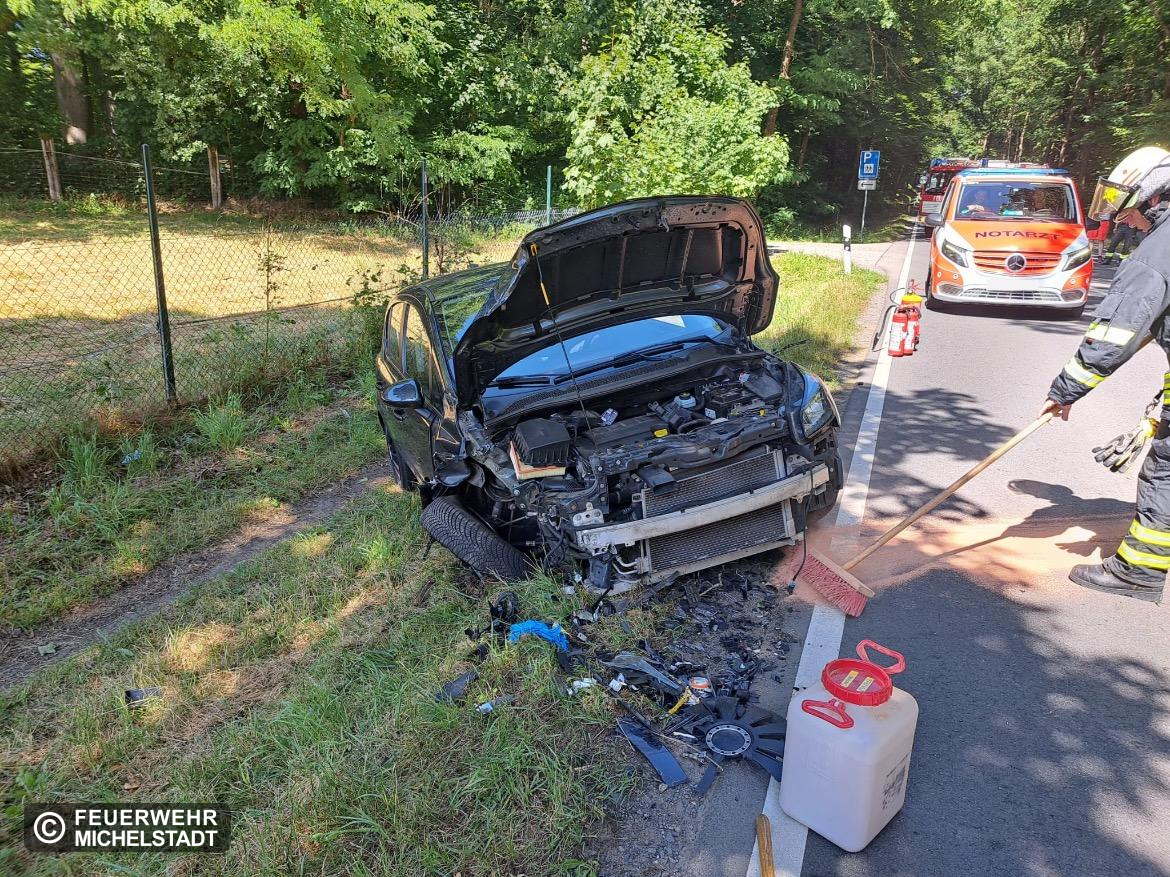 Am 04.07.2025 um 15:12 Uhr wurde die Feuerwehr Michelstadt mit dem Einsatzstichwort „H-Klemm 1Y“ zu einem gemeldeten Frontalzusammenstoß zweier Pkw auf der B47, Höhe Habermanns Kreuz, alarmiert. Die Einsatzmeldung erfolgte durch das Notarzteinsatzfahrzeug des DRK Kreisverbandes, das sich zufällig in unmittelbarer Nähe des Unfallorts befand.