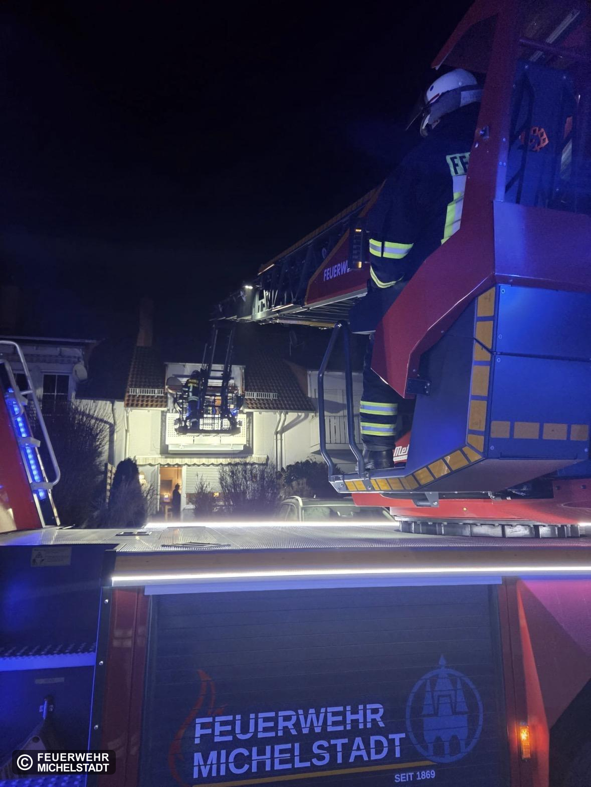 Gemeinsam mit den Kameraden der freiwilligen Feuerwehr Steinbach wurde eine Person über die Drehleiter gerettet und an den Rettungsdienst übergeben.
